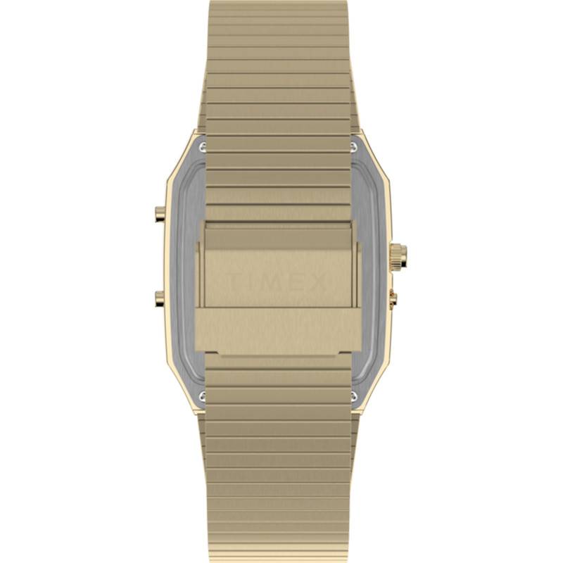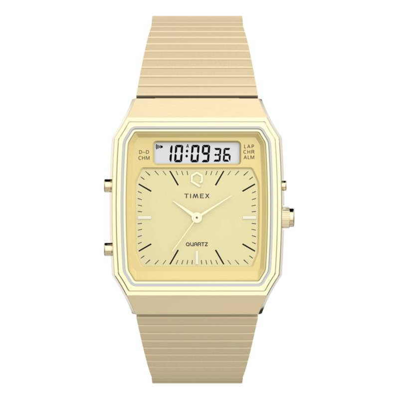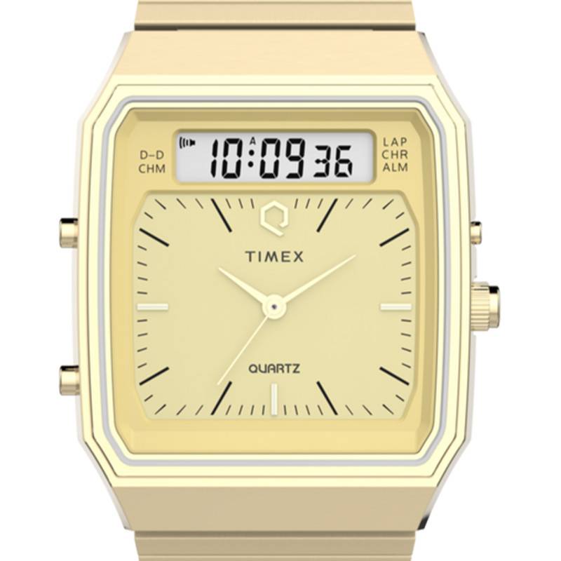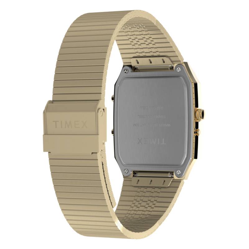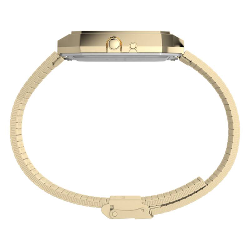 La montre Timex Q 1982 Reissue se démarque par son allure subtilement rétro et ses finitions élégantes. Le boîtier rectangulaire d'un diamètre de 33 mm est composé d'un assemblage soigné d'acier inoxydable avec une distillation de PVD or jaune pour un rendu d'exception. L'épaisseur contenue à 9 mm favorise un port discret et confortable au quotidien. Le choix de cette forme iconique et de ces matériaux garantit une allure classique tout en restant robuste contre les aléas du temps et les usages variés. Le fond du boîtier, fermement maintenu par des vis apparentes, renforce l'impression de qualité et de longévité tout en sécurisant le mécanisme intérieur.