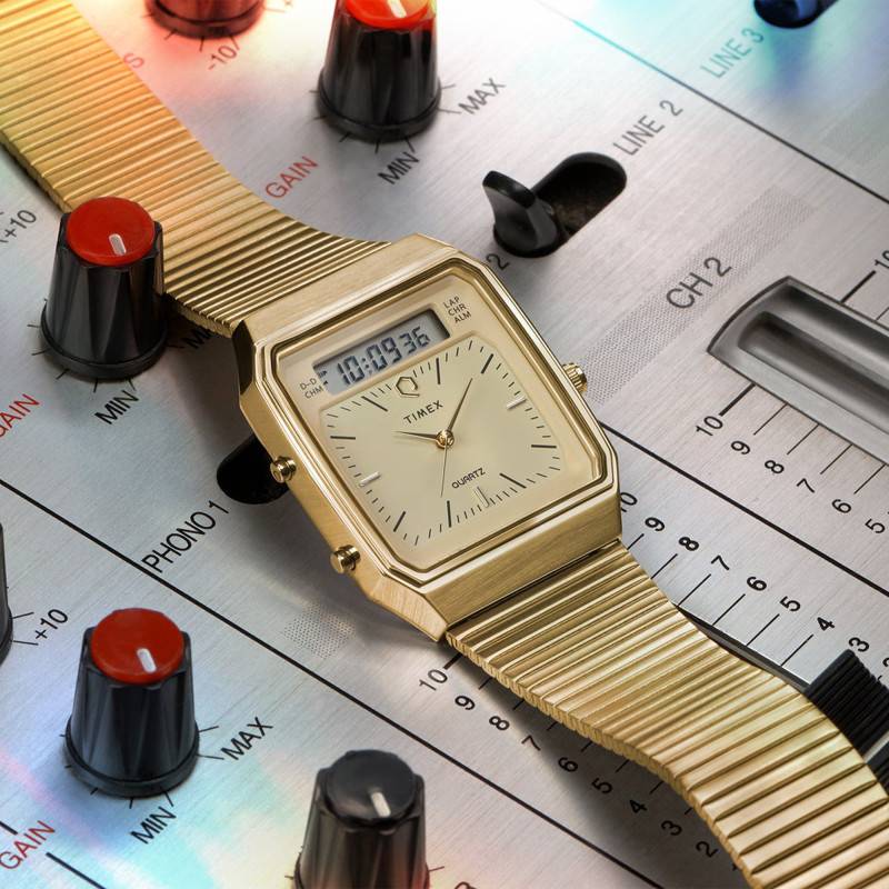 Sous son élégance, la Timex Q 1982 cache un mouvement quartz éprouvé, garantissant au garde-temps une précision sans égale. Conçu pour s'adapter à un mode de vie moderne, il inclut des complications telles que le chronographe, la fonctionnalité GMT pour le suivi de plusieurs fuseaux horaires, et une alarme 24 h, cela offrant une personnalisation accrue des alertes temporelles selon les besoins individuels. Toutes ces fonctions s'articulent harmonieusement grâce à des boutons poussoirs insérés dans le boîtier, renforçant à la fois l'aspect pratique et esthétique.