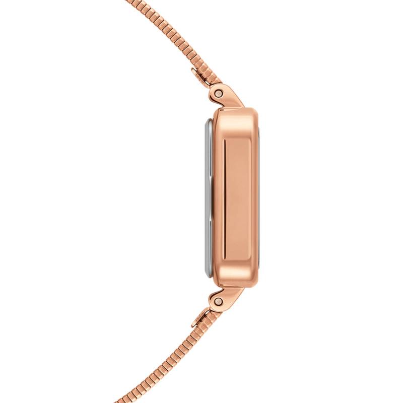 Son bracelet en acier inoxydable est recouvert d'un PVD rose afin de garder la féminité de votre bijou. Ce dernier dispose d'une entrecorne de 10 mm. Il dispose d'une finition polie et d'un motif piano, venant ainsi sublimer votre cadran. La longueur de votre bracelet est réglable selon la taille de votre poignet : il est possible de le régler entre 122 et 176 mm. Quant à la fermeture de votre bracelet, cette dernière s'effectuera à l'aide d'une boucle clipable.