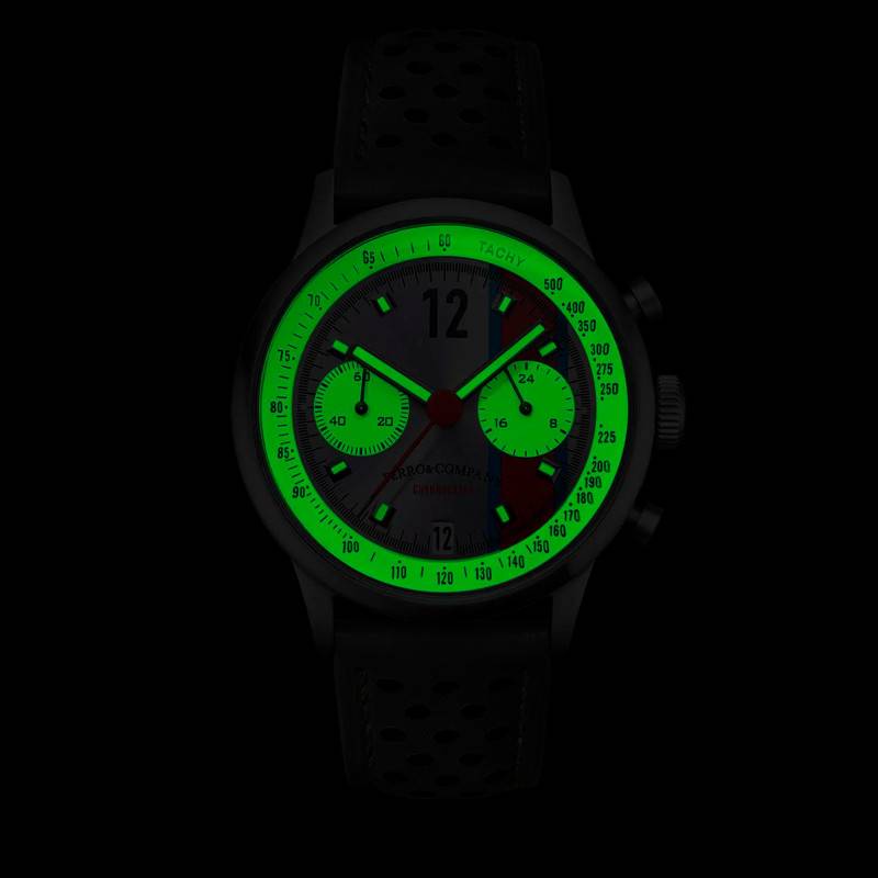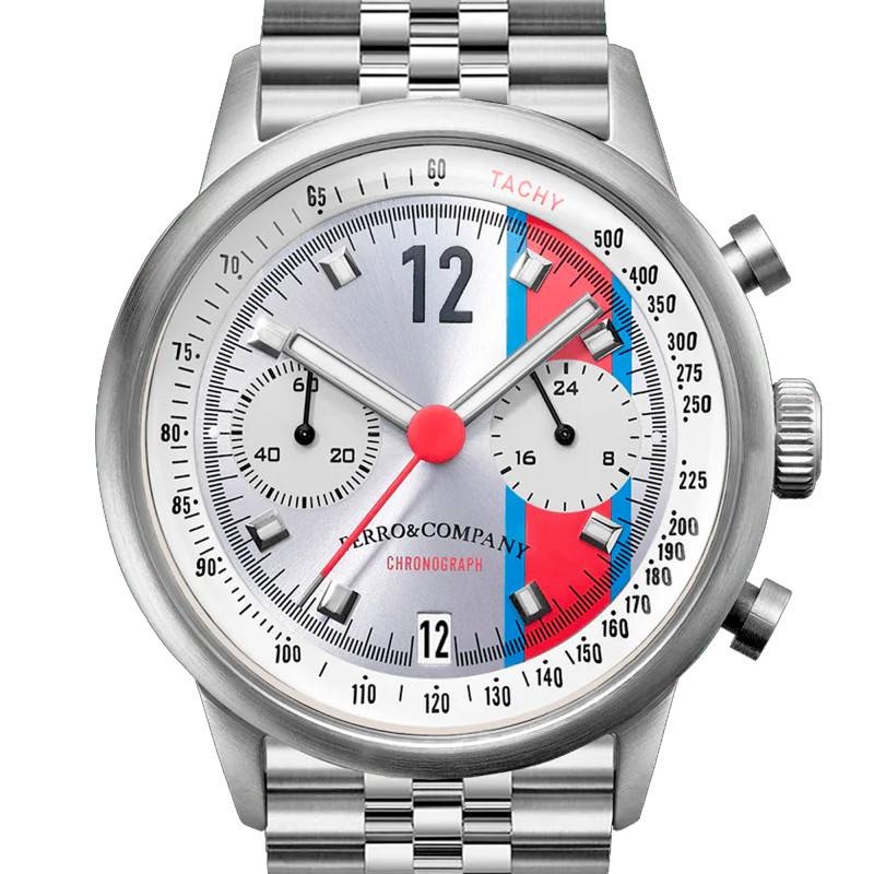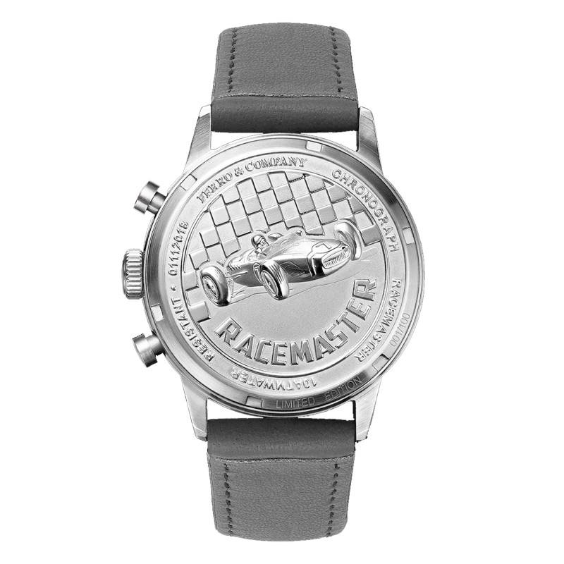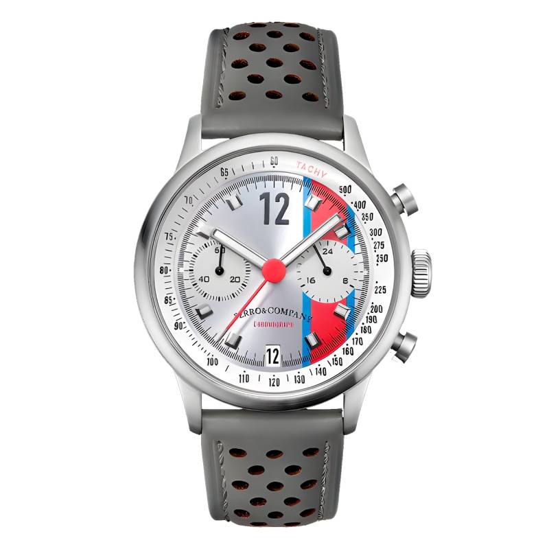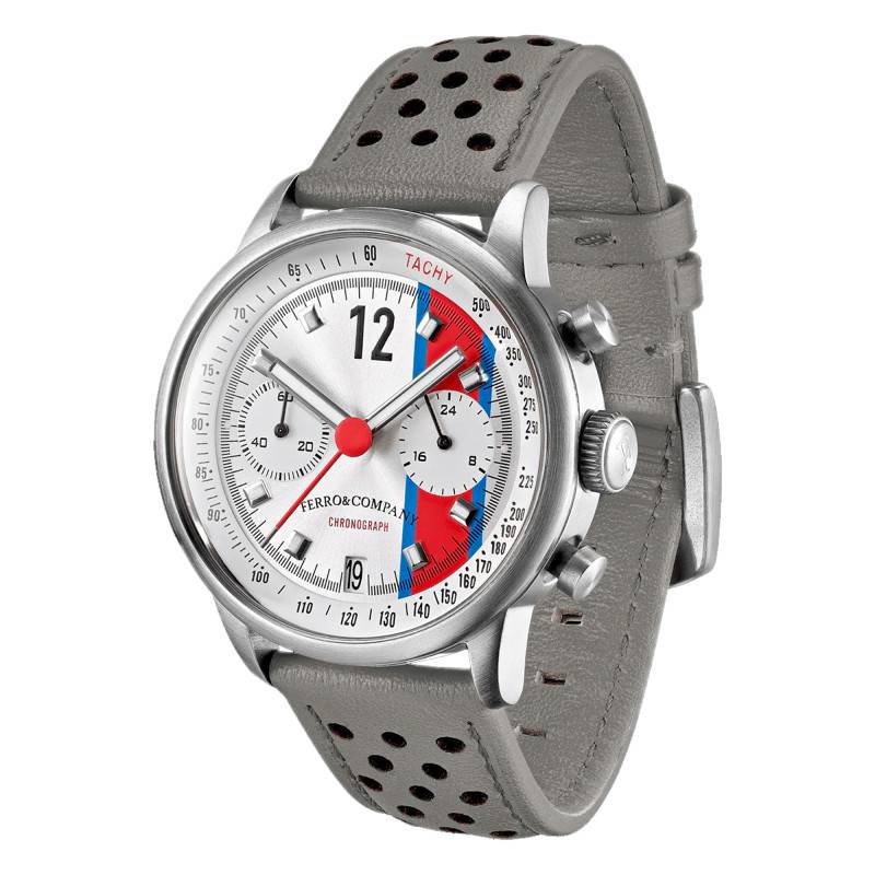 Ferro & Company s'est affirmée dans le domaine de l'horlogerie grâce à son savoir-faire méticuleux et ses designs raffinés. Établie par des amateurs de sport, la marque se distingue particulièrement par ses montres qui combinent un style classique à une technologie avancée. Engagée à sublimer votre poignet, elle vous propose aujourd'hui la montre chronographe Silver en édition limitée à 100 exemplaires de la collection Race Master. Elle est conçue avec un boîtier en acier inoxydable 316L de finition brossée. De couleur grise, il prend une forme ronde tout en promettant un confort de qualité. Ce dernier vous garantit une allure rehaussée dans les moindres détails par des experts en horlogerie. Léger, il affiche un diamètre de 39 mm, une longueur de 45 mm et une épaisseur de 13,13 mm pour un poids total de 60 gr. Ce boîtier est surmonté d'un verre hésalite permettant une visibilité optimale sur le cadran. À 3 heures, vous trouverez une couronne crantée et deux boutons-poussoirs chargés de régler les diverses fonctions. Enfin, son fond vissé permet une étanchéité de 5 ATM.