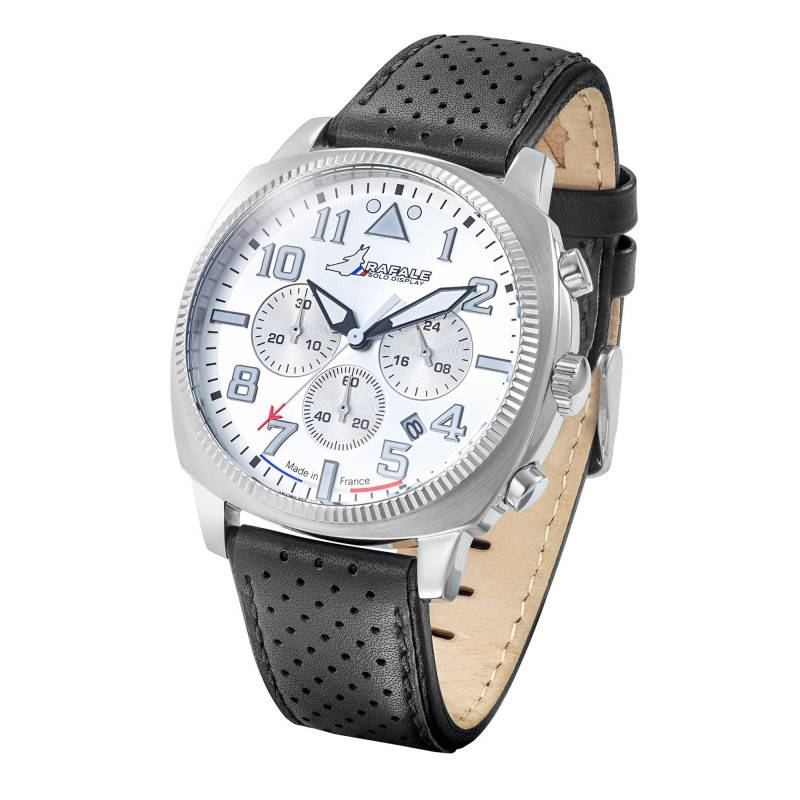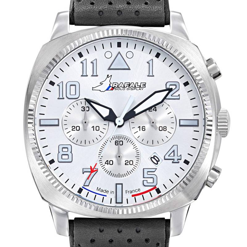 Dotée d'un boîtier en acier inoxydable, cette montre Rafale Solo Display COACH Chrono Acier Cuir Noir 666024 pour homme de la marque Patrouille de France est conçue pour ceux qui apprécient la robustesse associée à une esthétique moderne. Le boîtier, aux dimensions généreuses de 44 mm, est de forme coussin, une forme rare qui apporte une élégance subtile et distinctive à l'ensemble. Sa finition polie et brillante assure un éclat permanent, rendant la montre parfaite pour toutes les situations, des plus décontractées aux plus formelles. Avec une fabrication française, la montre est gage d'une qualité irréprochable. La lunette en acier inoxydable complète l'ensemble, ajoutant une couche de protection et d'esthétique au garde-temps, qui ne manque pas d’attraction visuelle. Enfin, le fond de boîte vissé renforce son étanchéité à 10 ATM, permettant une maîtrise totale de l’immersion jusqu’à 100 mètres de profondeur.