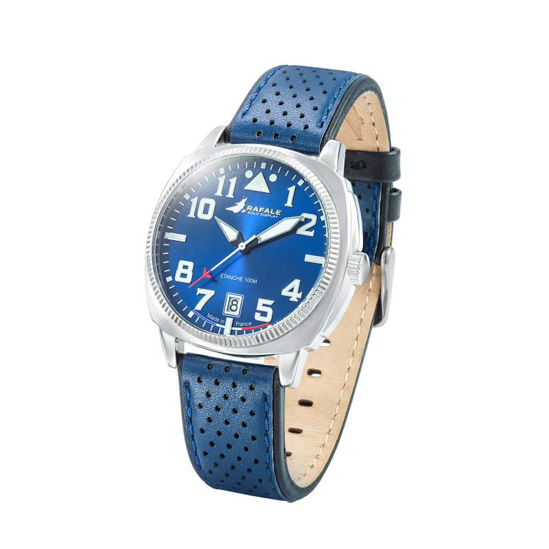 Le modèle Rafale Solo Display COACH incarne un style à la fois moderne et élégant. Fabriqué en France, ce garde-temps reflète le savoir-faire d'excellence de la Patrouille de France. Le boitier, réalisé en acier inoxydable de qualité supérieure, arbore une forme coussin distinctive, offrant un équilibre parfait entre robustesse et design. Avec un diamètre de 40 mm, il assure une présence notable sans être envahissant. La finition mate lui confère une allure raffinée et discrète, tandis que la couronne remontoir et la lunette en acier ajoutent une touche d'élégance supplémentaire.