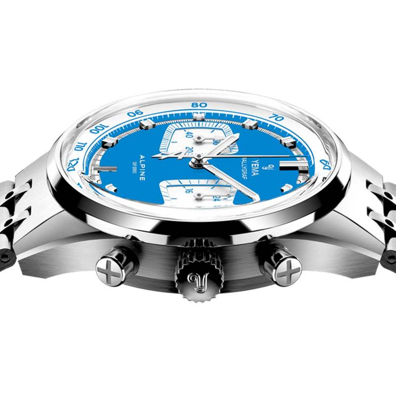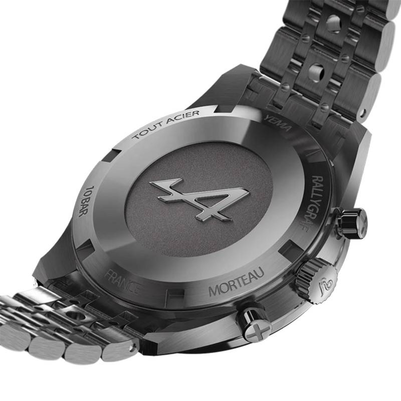 La montre Yema Rallygraf Alpine Cup Series incarne le mariage parfait entre sportivité et élégance. Fruit d’une collaboration étroite entre YEMA et le championnat Alpine Elf Cup Series, ces éditions spéciales incarnent la rencontre entre savoir-faire horloger et esprit de compétition automobile. Le boîtier rond, d'un diamètre de 39 mm et d'une épaisseur de 10,20 mm, est façonné en acier inoxydable 316L. Le style global de la montre se veut sportif avec une touche rétro, illustré par l'alternance subtile de finitions polies et brossées. Le fond de la boîte est vissé, assurant une meilleure étanchéité et protégeant efficacement le mécanisme interne. La montre est complétée par une lunette polie, créant un contraste visuel saisissant et ajoutant une profondeur esthétique à l'ensemble.