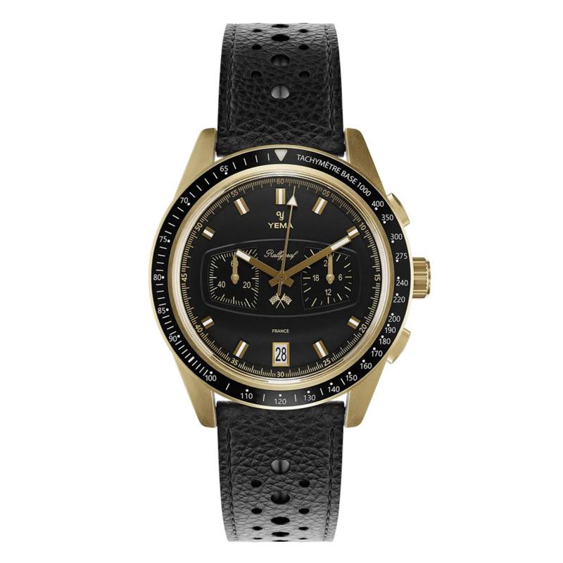 Yema est une marque de montres française emblématique, reconnue pour son expertise et son esprit innovant. Elle se distingue par sa capacité à combiner tradition et modernité, proposant des modèles équipés de mouvements fiables et des matériaux durables. Yema continue de séduire les passionnés d'horlogerie avec des garde-temps à la fois fonctionnels et stylés, affirmant ainsi son héritage et son influence dans le monde de l'horlogerie. La Racing School qui vous est ici représentée s'inscrit dans la tradition des chronographes Yema à double compteurs. Cette édition spéciale est issue de la collection Rallygraf et fait un clin d'œil aux monoplaces de formule 1 des années 1970 et 1980 de l'écurie Lotus. Pensée pour les hommes, elle se pare d'un boîtier de forme ronde fabriqué en acier inoxydable 316L poli. Il affiche 40 mm de diamètre avec une épaisseur de 11 mm et est doté d'une lunette fixe faite en aluminium de finition mate. De teinte noire, elle est graduée avec une échelle tachymétrique qui permet de calculer la vitesse moyenne sur une distance donnée. De plus, un verre minéral K1 double dôme de 2 mm d'épaisseur qui surplombe ce boîtier et il vous sera possible de régler les différents indicateurs au moyen de la couronne et des deux boutons-poussoirs placés à 2, 3 et 4 heures. Enfin, ce garde-temps dispose d'un fond vissé et gravé qui assure une étanchéité de 10 ATM.