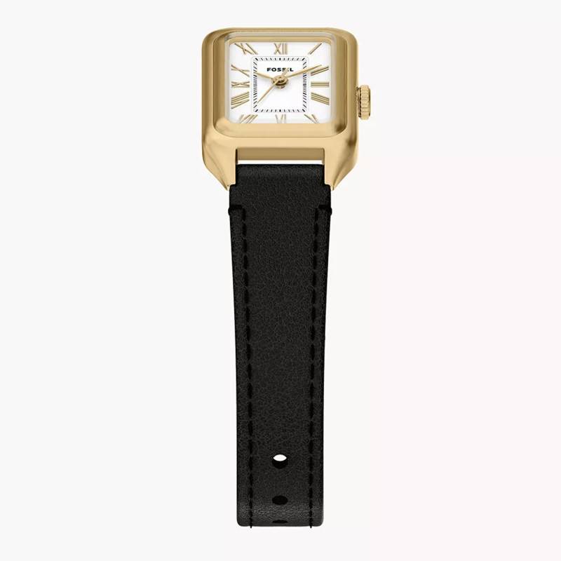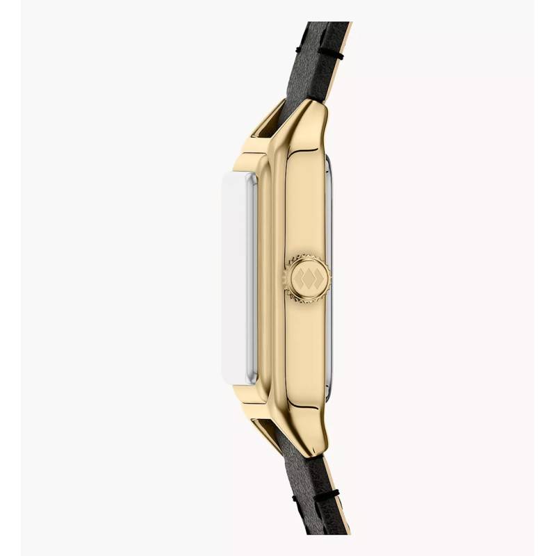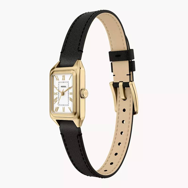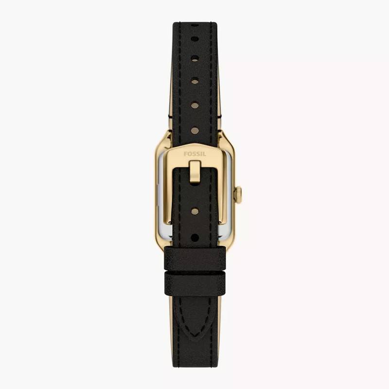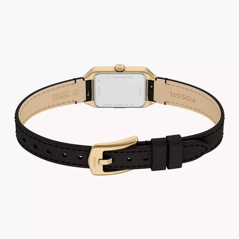 Fossil propose avec ce modèle Raquel une montre d'une élégance remarquable, mettant en avant un boîtier rectangulaire en acier inoxydable, rehaussé par une finition PVD jaune brillante. Le design soigné de cette montre pour femmes séduit par son raffinement. Avec un diamètre de 18 mm, elle est pensée pour s'adapter parfaitement aux poignets féminins et apporter une touche d'élégance à chaque tenue. Sa couronne unique permet un réglage précis de l'heure. Le fond de la montre est emboîté.