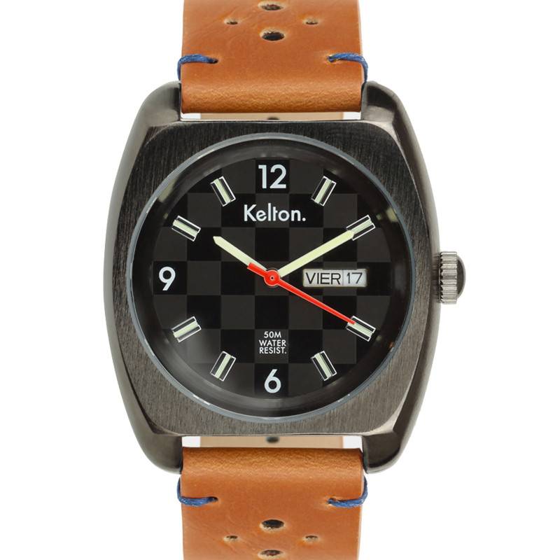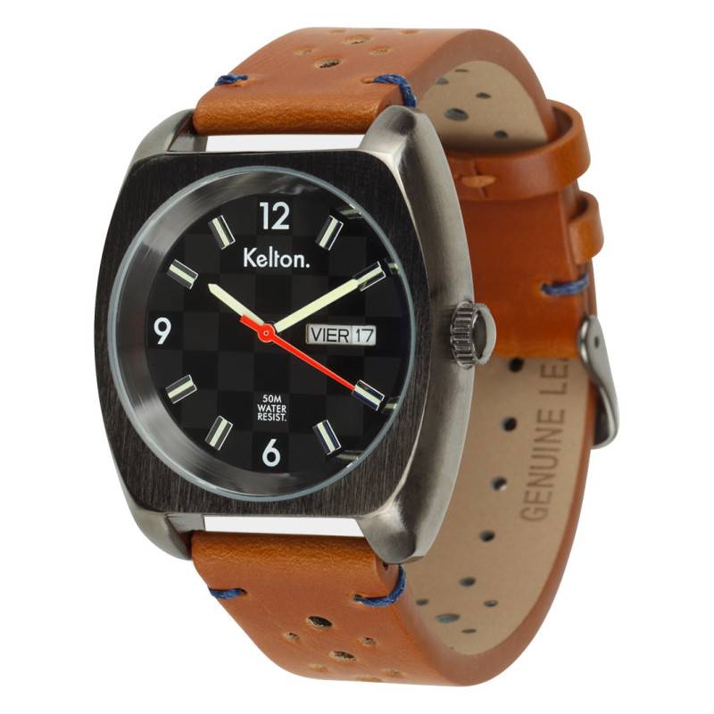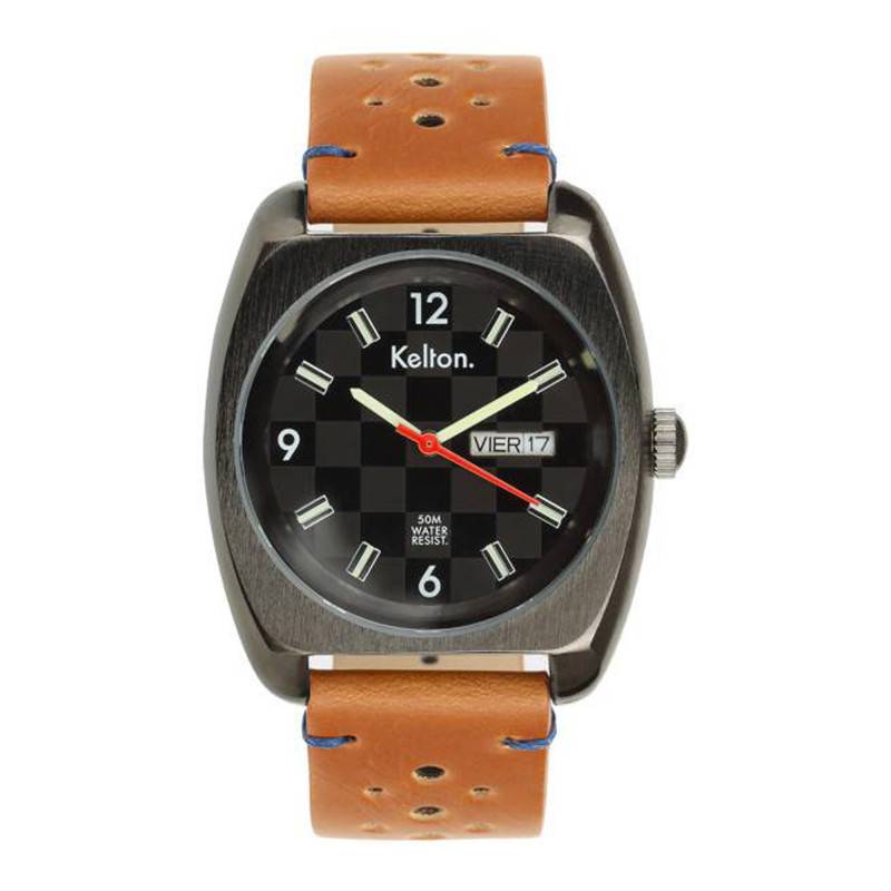La maison Kelton est mondialement connue pour ses collections horlogères de grande qualité au design extrêmement minutieux et au savoir-faire exceptionnel. Elle dévoile son savoir-faire à travers ce sublime modèle RC 22 Damier Brown. Ce dernier est paré d'un boîtier gris aux extrémités arrondies donnant l'illusion d'une parenthèse. De forme tonneau, il est entièrement conçu en acier inoxydable et dispose d'un diamètre de 38 mm, parfait pour les poignets de la gente masculine, offrant un look chic et élégant. Un verre minéral protège le cadran de tout élément susceptible de le nuire. Vous trouverez à 3 heures la traditionnelle couronne de remontoir qui se place à droite du boîtier, vous pourrez ajuster les aiguilles et le guichet date à votre convenance. Enfin, son fond emboîté lui assure une étanchéité de 3 ATM.
