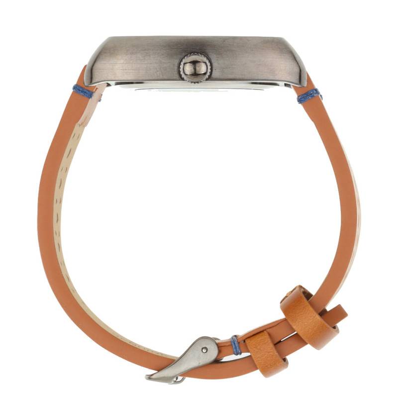 Le bracelet est entièrement fait de cuir véritable et dispose de petites perforations. De couleur marron, il crée un contraste parfait avec le reste de la montre et s'accorde facilement à toutes les tenues. Il est muni d'un fermoir à boucle ardillon de couleur grise.