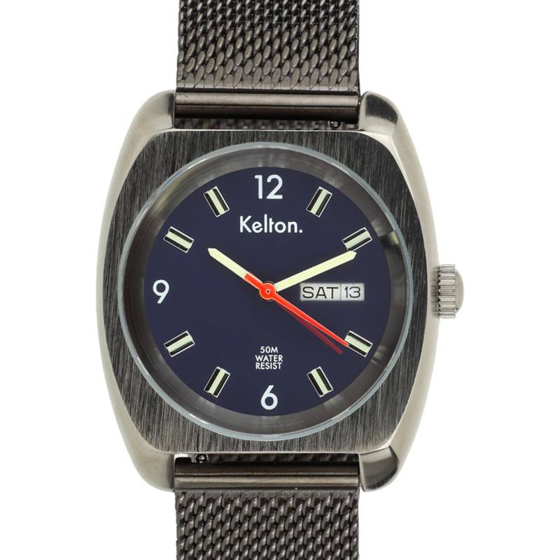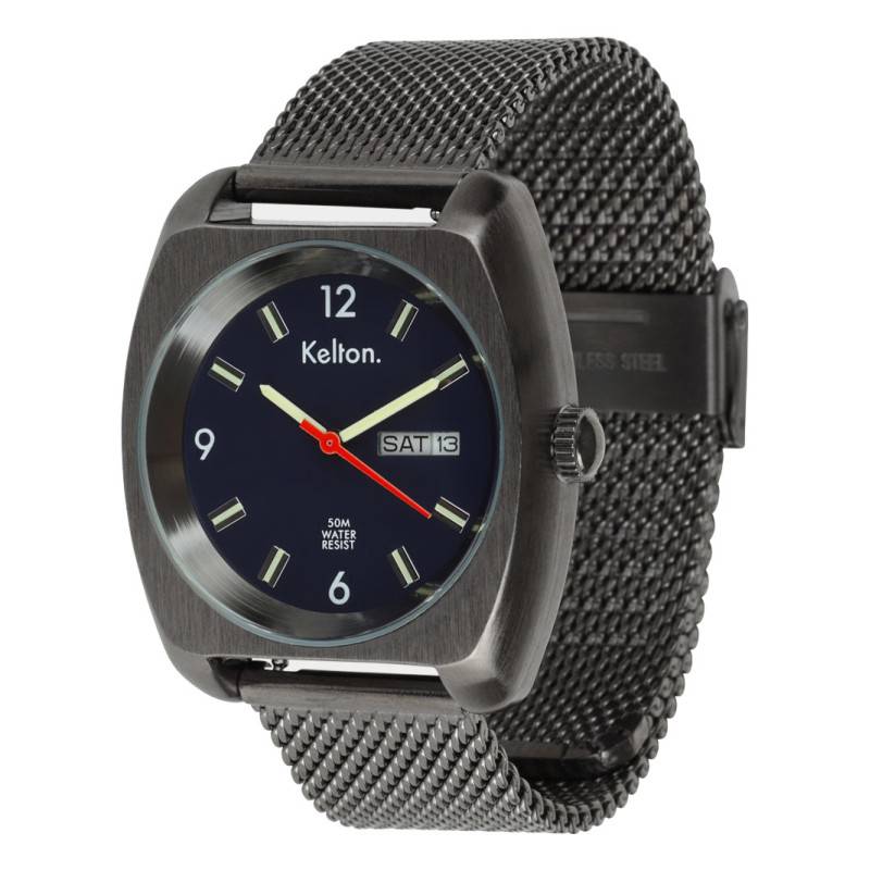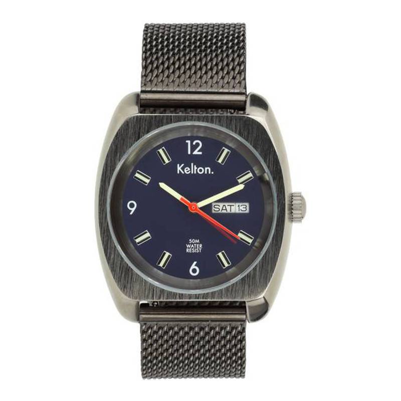 Les collections de la marque Kelton arborent toujours un style alliant modernité et esprit chic. Ce modèle RC 22 Navy Mesh en est l'illustration parfaite. Il est doté d'un boîtier en acier inoxydable noir robuste de forme tonneau avec une finition brossée. Son diamètre de 38 mm, est idéal pour un tour de poignet masculin. Le cadran de ce magnifique garde-temps est surplombé par un verre minéral qui le protège de la plupart des rayures et des chocs. La couronne qui s'illustre à droite du boîtier facilitera le réglage des heures ainsi que du guichet date. Son fond emboîté lui assure une étanchéité de 3 ATM.