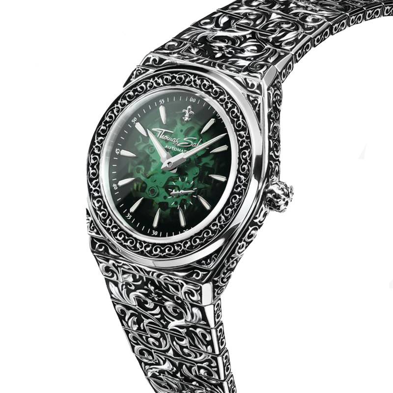 Le cadran de cette montre Thomas Sabo est un véritable chef-d'œuvre d'horlogerie moderne, combinant les finitions fumée et squelettée. Les aiguilles et index luminescents se détachent clairement sur cette toile complexe, assurant une lisibilité parfaite quelle que soit la luminosité ambiante. Le cadran accueille également un indicateur de petite seconde, ajoutant un élément fonctionnel supplémentaire à son design sophistiqué.