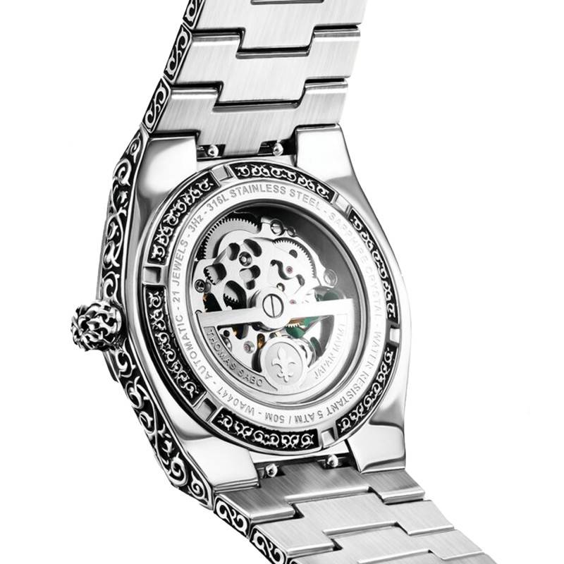 Sous le cadran discret et sophistiqué de cette montre Thomas Sabo, se cache un mouvement automatique hautement performant, le Miyota 8N40, fabriqué au Japon. Ce mécanisme de renommée mondiale est connu pour sa robustesse et sa précision exceptionnelle. Il bat à une fréquence de 21 600 A/h (3 Hz), offrant une précision impressionnante pour un garde-temps à ce niveau de sophistication. Grâce à sa réserve de marche de 42 heures, cette montre garantit une performance continue même lorsque vous ne la portez pas quotidiennement.
