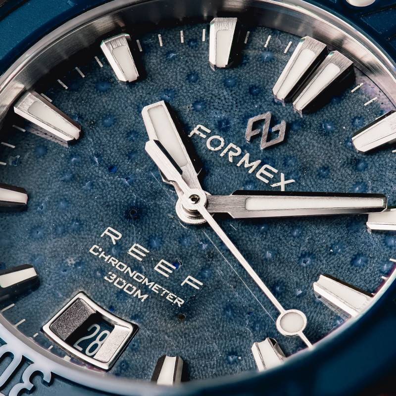 Présentée à We Love Watches 2025, la Reef 39.5 mm Blue Coral est le fruit d'une collaboration exclusive entre Formex et Ocarat. Produite à seulement 50 exemplaires numérotés, cette montre est une pièce véritablement rare, destinée aux amateurs et collectionneurs passionnés.