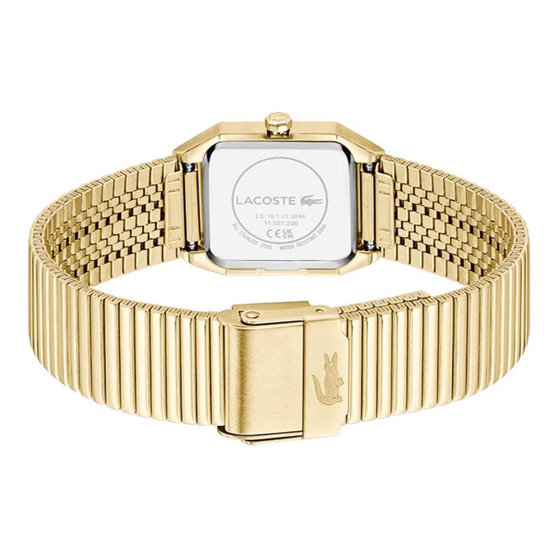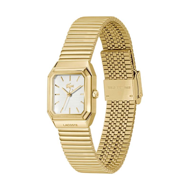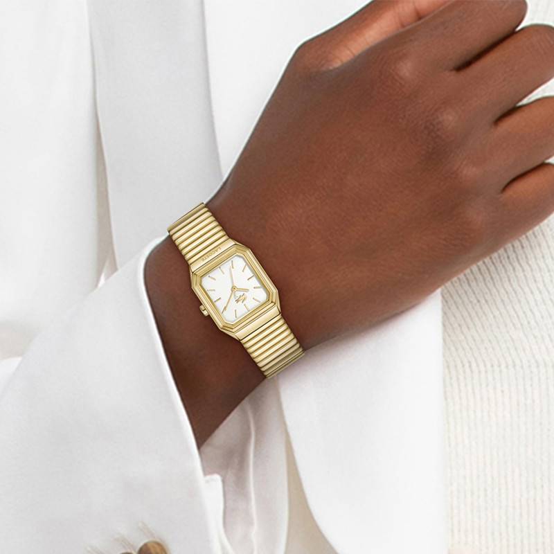 La montre Rene par Lacoste incarne l'élégance moderne avec son boîtier rectangulaire en acier inoxydable. Avec ses dimensions de 23 mm en diamètre et une épaisseur de 7 mm, elle offre un design délicat et distinct, parfait pour les femmes à la recherche d'une pièce féminine et raffinée. Le poids du boîtier, à savoir 62 g, confère une présence assurée tout en restant confortable pour un port quotidien. La montre arbore une lunette en acier qui ajoute une couche supplémentaire de sophistication. Protégée par un verre minéral plat, cette montre garantit une protection robuste contre les légères rayures et les impacts du quotidien. Le fond de la boîte est emboîté, offrant une allure lisse et élégante.