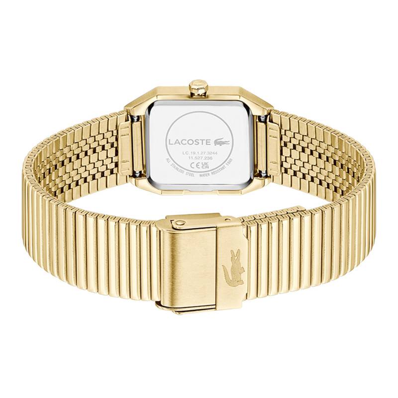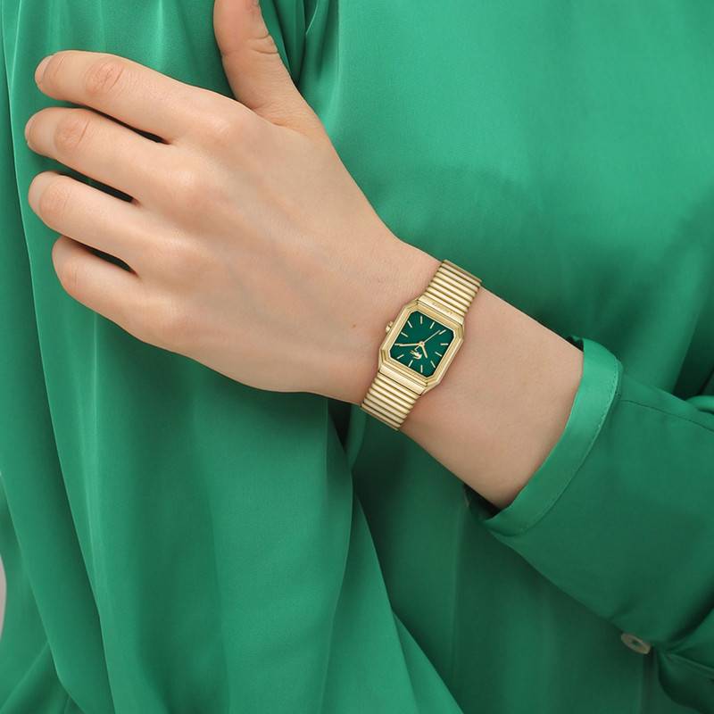 La montre Rene de Lacoste incarne une élégance moderne et un design sophistiqué qui captivera l'attention de tous. Son boîtier en acier inoxydable arbore une forme rectangulaire, mariant habilement rigueur et style contemporain. Avec une épaisseur de seulement 7 mm et un diamètre de 23 mm, cette montre se distingue par sa légèreté et son confort au poignet, ne pesant que 62 g. La lunette ainsi que le fond de boîte sont également en acier. Le fond emboîté garantit un aspect épuré et raffiné, tout en assurant la protection du mécanisme intérieur.