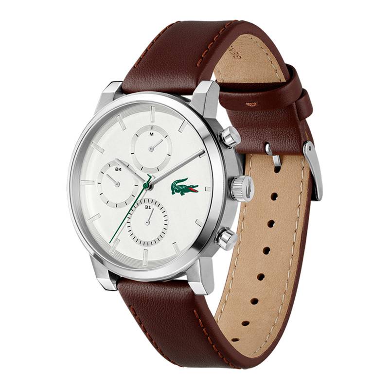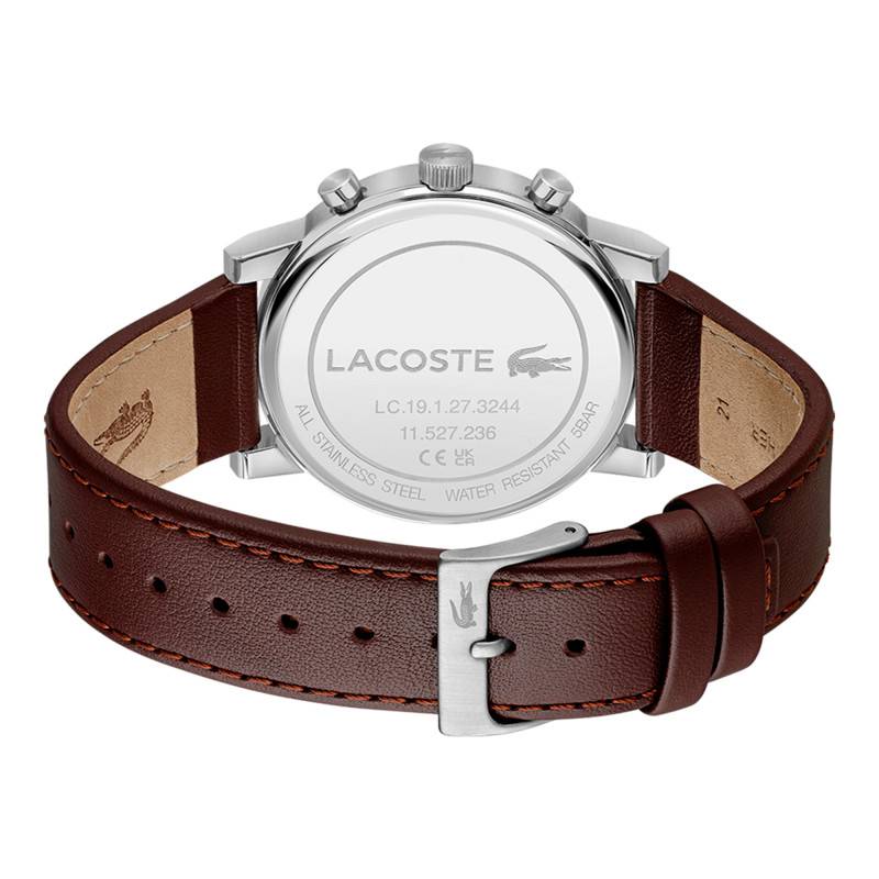 Cette montre masculine est une déclaration de style et de fonctionnalité qui se distingue par son boîtier rond en acier inoxydable. Le choix de l'acier lui confère une durabilité exceptionnelle tout en restant léger et agréable à porter. Le boîtier mesure 44 mm de diamètre, ce qui offre une présence marquée au poignet sans être excessivement imposant. La finition polie du boîtier lui permet de capter la lumière en offrant des reflets sophistiqués, accentuant ainsi son allure contemporaine et élégante. Le fond emboîté assure un design sans couture, complétant la silhouette épurée de ce garde-temps signé Lacoste. L'intégration d'un verre minéral garantit une résistance accrue contre les éraflures tout en maintenant une clarté optimale pour la lecture de l'heure.