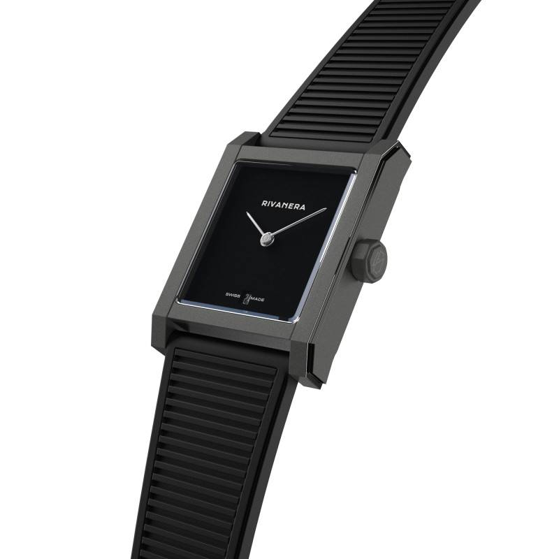 La montre Rivanera Piccolo MB (Musou Black) se distingue par son boîtier en titane Grade 5, connu pour sa légèreté et sa robustesse exceptionnelles. Avec des dimensions de 33 mm de longueur et 26 mm de largeur, cette montre présente une silhouette rectangulaire élégante et moderne, idéale pour l'homme contemporain. Sa faible épaisseur de 6,90 mm et son poids de 29 g, rendent ce garde-temps incroyablement confortable à porter au quotidien. Conçu et fabriqué en Suisse, il incarne un savoir-faire horloger inégalé, offrant une fiabilité à toute épreuve et un style indéniable. Cette montre arbore une couleur gris et noir qui s'adapte à toutes les tenues, tout en garantissant une allure distinguée et masculine.