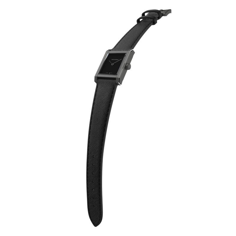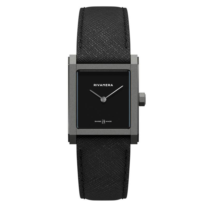 La montre Rivanera Piccolo MB (Musou Black) se distingue par son boîtier en titane Grade 5, connu pour sa légèreté et sa robustesse exceptionnelles. Avec des dimensions de 33 mm de longueur et 26 mm de largeur, cette montre présente une silhouette rectangulaire élégante et moderne, idéale pour l'homme contemporain. Sa faible épaisseur de 6,90 mm et son poids de 29 g, rendent ce garde-temps incroyablement confortable à porter au quotidien. Conçu et fabriqué en Suisse, il incarne un savoir-faire horloger inégalé, offrant une fiabilité à toute épreuve et un style indéniable. Cette montre arbore une couleur gris et noir qui s'adapte à toutes les tenues, tout en garantissant une allure distinguée et masculine.