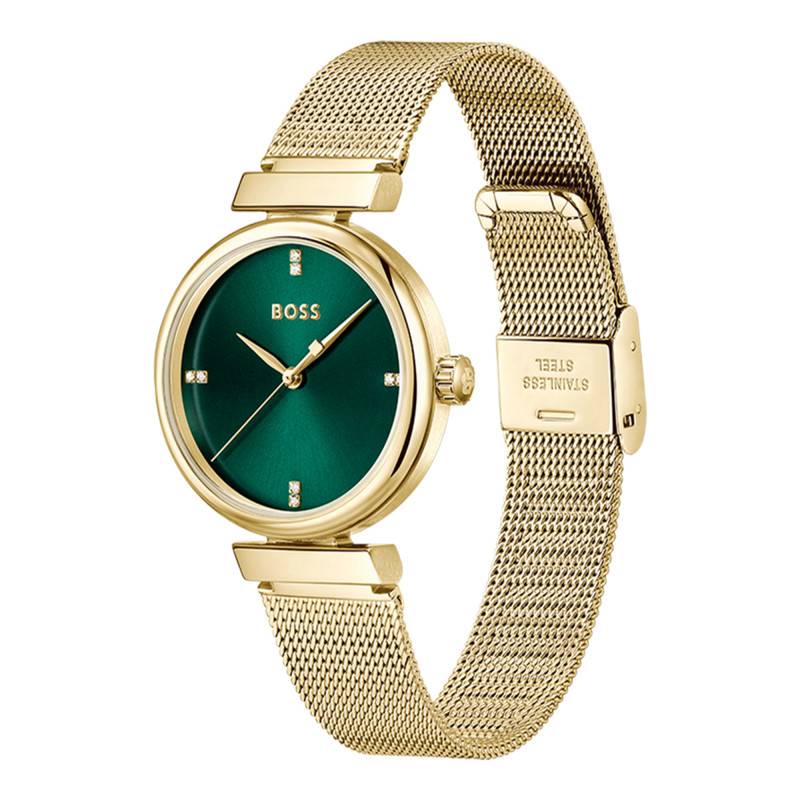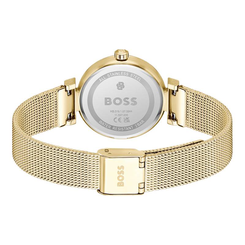 La montre Boss Rosehill est une pièce d'une élégance remarquable, idéale pour les femmes qui recherchent à la fois style et fonctionnalité. Le boîtier en acier inoxydable de couleur jaune confère à cette montre une allure luxueuse et sophistiquée. Ce boîtier, de forme ronde, a un diamètre de 32 mm et une épaisseur de 8 mm, ce qui en fait un accessoire discret mais présent sur le poignet. Avec un poids de seulement 50 grammes, elle est légère et agréable à porter au quotidien. Les finitions polies et satinées de l'acier capturent la lumière, ajoutant une dimension lumineuse à cette création intemporelle. Son fond de boîte emboîté préserve l'intégrité du design général tout en offrant une résistance suffisante aux usages quotidiens.