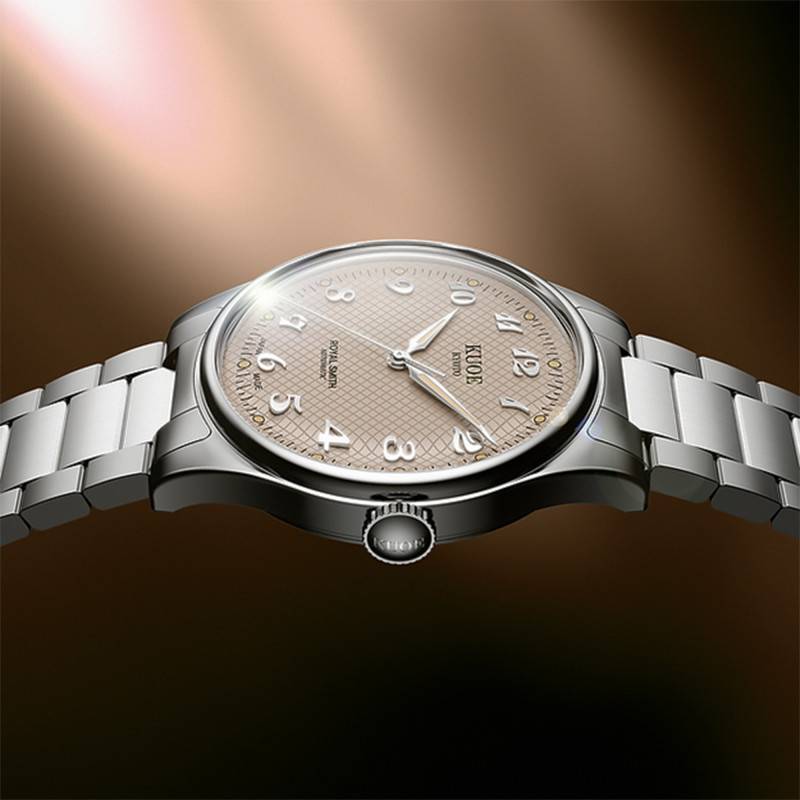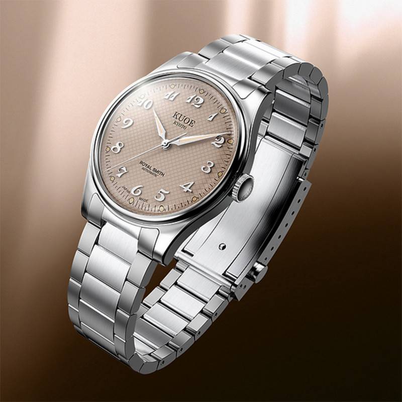 La montre Royal Smith 90-006 Breguet Dusty pink dial de Kuoe Kyoto incarne l'essence même de l'élégance japonaise et de la technicité horlogère. Arborant un boîtier rond en acier inoxydable 316L, elle est conçue pour résister aux défis du quotidien tout en conservant une apparence polie et gracieuse. Avec un diamètre de 35 mm, une épaisseur de 10 mm et une longueur de 42 mm, elle repose élégamment sur le poignet, ni trop imposante, ni trop discrète.