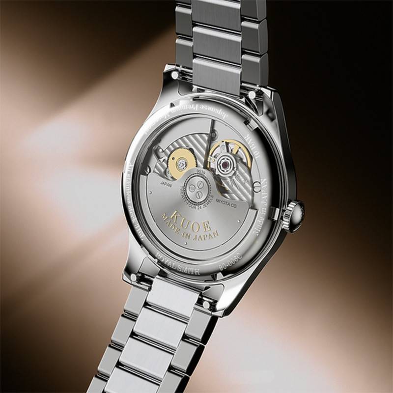 Cette montre est animée par un calibre automatique Mitsubishi 9039, un modèle emblématique de fiabilité et de précision. Avec une fréquence de 28,800 A/h (4 Hz), le mouvement assure une énorme précision de performance, alors que sa réserve de marche de 42 heures permet une utilisation prolongée sans besoin de remonter la montre manuellement. Le dispositif stop-seconde intégré ajoute à la fonctionnalité pratique de cette montre, offrant la possibilité de régler l'heure avec une exactitude impressionnante. Conçu et fabriqué au Japon, ce mouvement est le fruit de l'expertise et de la maîtrise technique exceptionnelles, consolidant la réputation de la maison Kuoe Kyoto comme fabricant horloger d'exception.