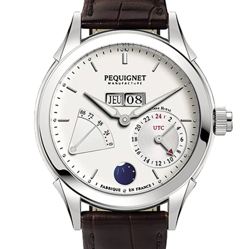 Le mouvement présent dans le boitier de ce modèle manufacture est un mouvement automatique entièrement conçu, prototypé, contrôlé et assemblé dans le laboratoire de Haute Horlogerie Pequignet à Morteau, au cœur du Jura horloger français. Ce calibre Royal compte 298 pièces et offre une configuration grande date, jour et indicateur de réserve de marche. En ce qui concerne la réserve de marche calculée, elle est de 88 heures indiquée sur le cadran dont 72 heures garanties en isochronisme. Ce mouvement affichant 21 600 alternances par heure (3 Hz) intègre un remontage automatique dans les 2 sens et vous offre donc les fonctions heures, minutes, petite seconde, jour, date, indicateur jour/nuit et indicateur de réserve de marche.