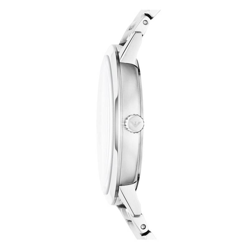Emporio Armani propose ici un garde-temps masculin à l'élégance intemporelle avec la montre Ruggero. Ce modèle se distingue par son allure sobre et raffinée, taillée pour convenir aux gentlemen modernes. Le boîtier est en acier inoxydable, matière réputée pour sa durabilité et sa résistance à la corrosion. Son design circulaire, aux courbes classiques, est d'une forme ronde assumée, entourée d'une finition de surface polie et brillante, conférant un éclat subtil. Le fond de boîtier, bien qu'emboîté, assure une protection efficace du mécanisme.