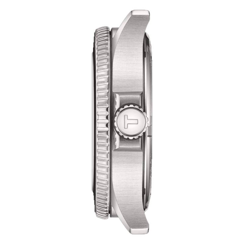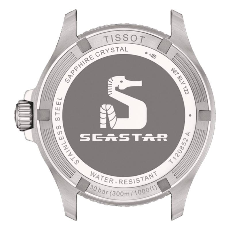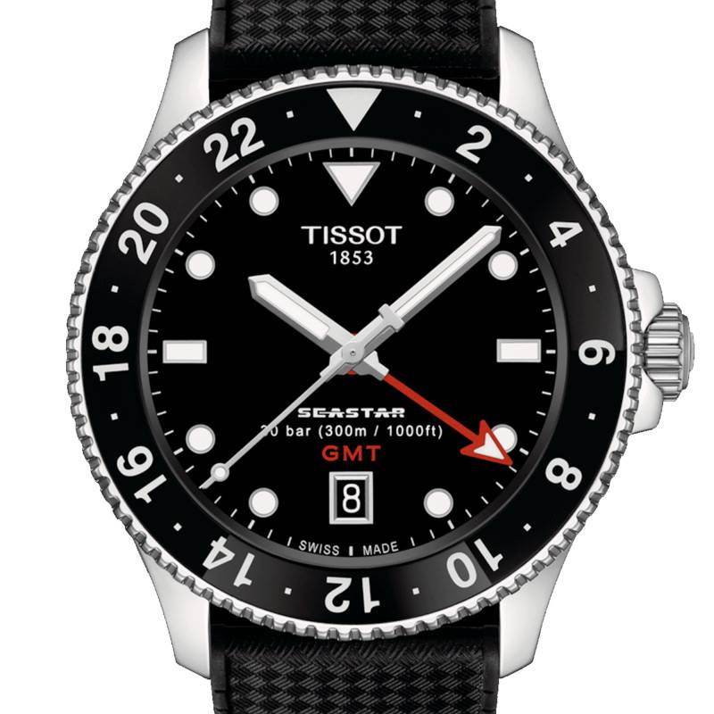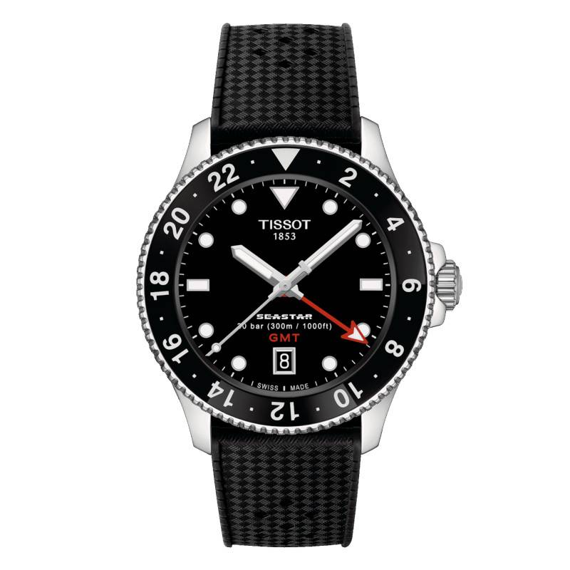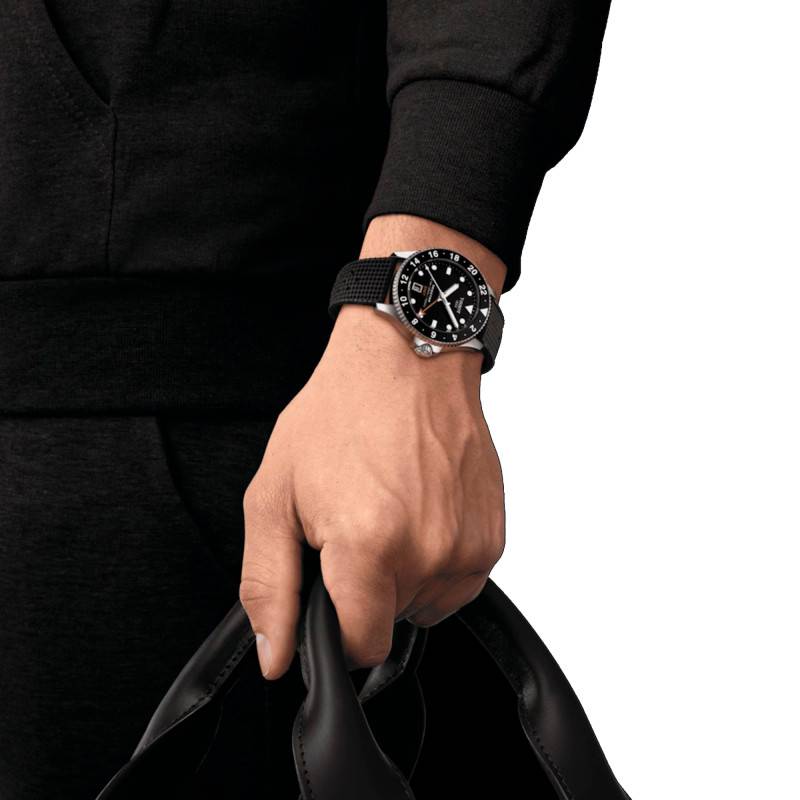 Tissot est une grande marque qui met en avant l'horlogerie suisse grâce à son savoir-faire connu à l'international avec des modèles de haute qualité. Chaque création de cette entreprise est un mélange harmonieux de style classique et de modernité. En plus de leur fonctionnalité exceptionnelle, ces montres sont également conçues pour offrir un confort optimal et une précision ultime. Dans la collection Seastar 1000, se trouve cette charmante montre GMT T1208521705100 qui sierra à merveille aux poignets des hommes. Elle comprend un boîtier de couleur argentée qui est réalisé en acier inoxydable 316L brossé. De forme ronde, il affiche 40 mm de diamètre, 11,80 mm d'épaisseur et dispose d'un poids de 93 gr. De plus, ce dernier est surmonté d'une lunette crantée noire en verre minéral. Rotative, elle comporte des marqueurs luminescents assurant la fonction GMT qui s'illuminent dans l'obscurité. Notez qu'un verre saphir plat inrayable surplombe le boîtier afin de protéger le cadran contre les chocs extérieurs. À 3 heures, est positionnée une couronne vissée qui sert au réglage des aiguilles et du guichet. Enfin, le fond de boîte vissé de cette montre permet une étanchéité de 30 ATM qui est parfaite pour les passionnés de plongées sous-marines.