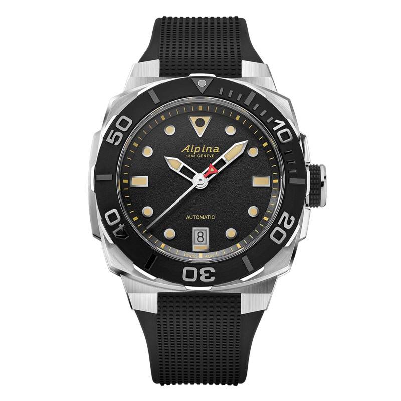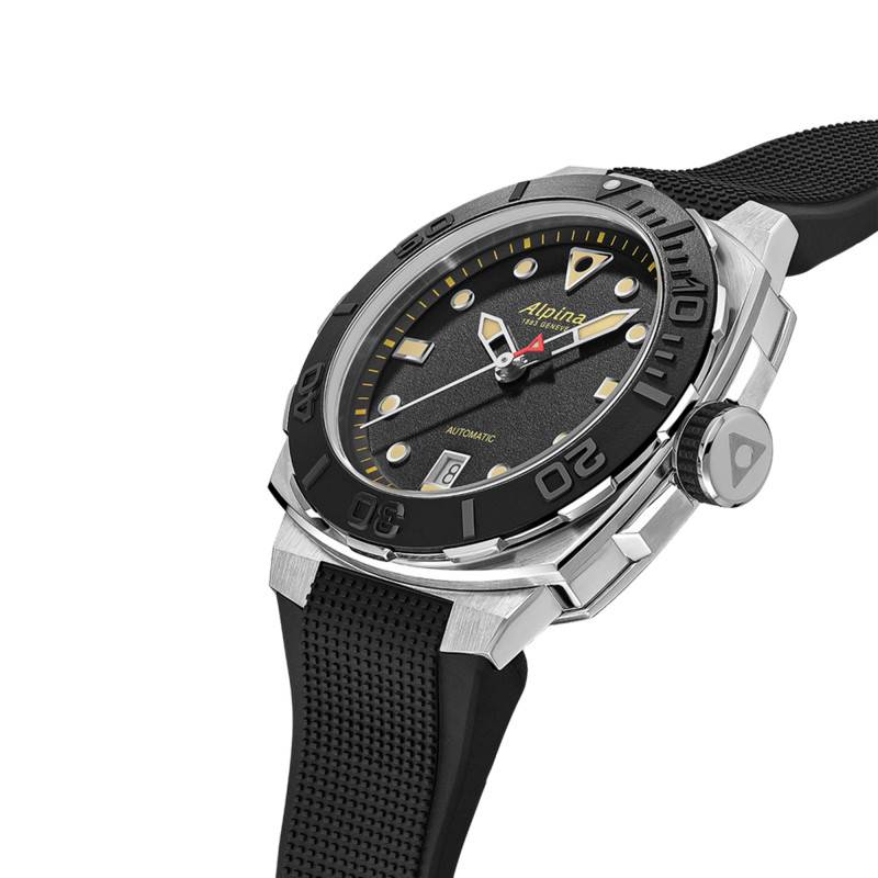 La montre Seastrong Diver d'Alpina est un véritable témoignage de l'ingéniosité suisse, combinant style et fonctionnalité pour les amateurs de plongée et d'activités nautiques. Conçue avec un boîtier en acier inoxydable 316L de forme coussin, elle arbore une élégance robuste avec ses finitions brossées et polies qui capturent subtilement la lumière. Le diamètre de 39 mm et une épaisseur de 12 mm assurent une présence confortable au poignet, sans compromettre la durabilité. La lunette en céramique, unidirectionnelle, offre une assurance supplémentaire avec ses marqueurs luminescents, parfaits pour un suivi précis du temps durant vos explorations sous-marines.