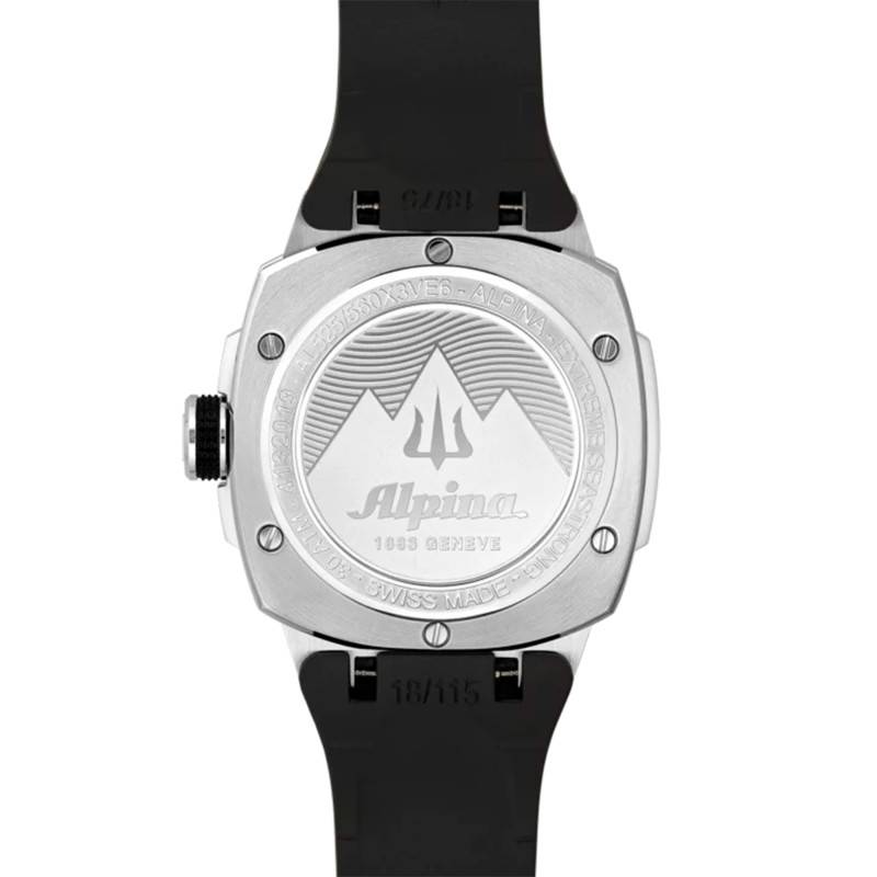 La montre Alpina Seastrong Diver Extreme Automatic est une véritable icône dans le monde de l'horlogerie, conçue spécialement pour les aventuriers des océans. Cette pièce, édition limitée à 50 unités en collaboration avec The Real Time Show, incarne à la perfection la robustesse et l'élégance. Arborant un boîtier en acier inoxydable avec une forme coussin, elle se distingue par une finition mate brossée qui capte la lumière avec une subtilité remarquable. Grâce à ses dimensions de 40,50 mm par 39,00 mm, et une épaisseur de 12,65 mm, elle affirme sa présence tout en offrant un confort exceptionnel au poignet. Le verre saphir avec traitement antireflet complète cette œuvre de précision, garantissant une lisibilité optimale dans toutes les conditions. Cette collaboration est la signature des animateurs passionnés du podcast horloger The Real Time Show, Alon Ben Joseph et Rob Nudds. Ensemble, ils ont conçu une édition spéciale qui revisite en profondeur, l'esthétique et la lisibilité de la Seastrong, en intégrant un cadran inédit, de nouveaux contrastes et des choix stylistiques forts, tout en restant fidèle à l'héritage sportif et technique d'Alpina.