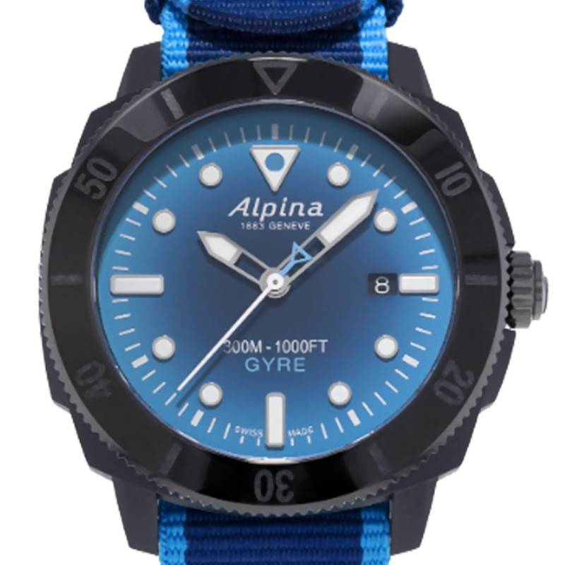 Fort de son savoir-faire horloger suisse, la maison Alpina vous partage un axe écologique de son identité, une première pour la marque. Cette montre est produite en collaboration avec Gyre, une startup créée par l'écrivain horloger vétéran Bernard Werk. Il a choisi de transformer le plastique océanique en garde-temps. Les performances aquatiques seront similaires et pourront entrer dans l'ère écologique non négligeable pour le bien-être tant sur la terre qu'en mer. La maison Alpina a choisi de moderniser son modèle emblématique de plongée la Seastrong Diver en vous proposant un boîtier avec 70% de plastique recyclé et 30% de fibre de verre. Il présente des dimensions purement masculines avec un diamètre de 44 mm pour une épaisseur de 12.15 mm. Sa lunette est quant à elle uni-directionnelle et graduée. Elle accueille à 3 heures une couronne vissée qui permettra de garder une lecture précise des heures et des minutes au coeur des abysses. Elle vous permet de modifier à votre convenance les aiguilles présentes sur le cadran. Ce dernier est protégé par un verre saphir contre les chocs extérieurs. Cette glace bombée est reconnue dans l'univers horloger pour sa haute résistance aux rayures. Cette montre de plongée à la particularité de détenir un fond de boîte vissé et vous offrira ainsi une grande étanchéité allant jusqu'à 300 mètres de profondeur. Laissez-vous séduire par les valeurs de cette pièce horlogère engagée, disponible en édition limitée à 1883 exemplaires.