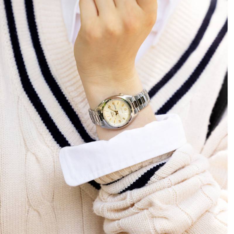 Cette montre Seiko 5 Sports Automatique réunit élégance et fonctionnalité. Fabriqué au Japon, son boîtier en forme de tonneau mesure 32 mm de diamètre et 11,40 mm d'épaisseur, offrant une présence subtile au poignet tout en étant confortable à porter. L'utilisation de l'acier inoxydable, reconnu pour sa durabilité et sa résistance à la corrosion, garantit que cette montre conserve son éclat au fil du temps. La finition polie / brillante ajoute une touche de raffinement. Le verre bombé Hardlex protège non seulement le cadran des rayures, mais lui confère également une clarté appréciable. Le fond transparent vissé permet un aperçu fascinant du mouvement automatique, soulignant l'expertise horlogère de Seiko. Un bouton remontoir unique assure un réglage facile.