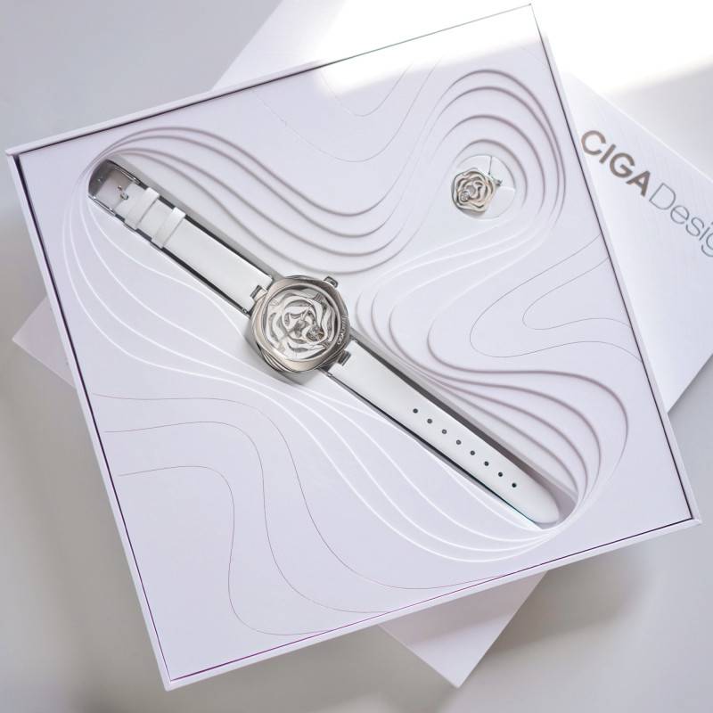 La Montre Série R - Danish Rose de Ciga Design pour femme incarne l'essence même de l'élégance contemporaine. Ce garde-temps allie savoir-faire horloger et design avant-gardiste, avec son boîtier asymétrique en acier inoxydable à la finition polie et brillante, pour un effet miroir en toute circonstance. Ce design unique emprunte sa silhouette aux pétales de la rose danoise, symbolisant une multitude de bonnes fortunes et diffusant une pointe de raffinement. La montre repose sur un diamètre de 33 mm, convenant parfaitement aux poignets féminins raffinés. Le fond de boîtier emboîté assure une belle intégrité structurelle et une silhouette épurée.