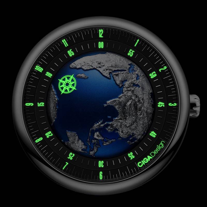 Le cadran de la montre est une véritable œuvre d'art, représentant avec minutie une carte du monde en hommage à notre planète bleue. Utilisant une technologie de gravure CNC, le cadran simule avec finesse la topographie terrestre, offrant une profondeur visuelle captivante. La finition gravée ajoute une dimension artistique, tout en transmettant un message puissant : il n'y a qu'une seule Terre à protéger. L'interaction unique entre les éléments visuels et la mécanique de la montre offre une nouvelle perception du passage du temps, inspirée des cadrans solaires antiques et de l'équilibre entre les cycles jour-nuit.