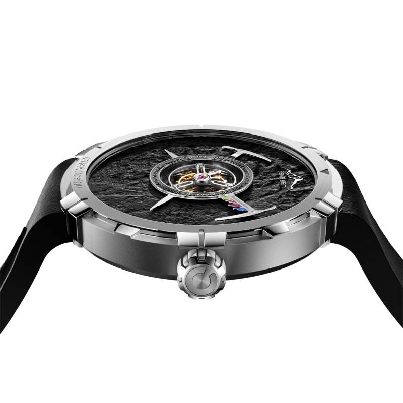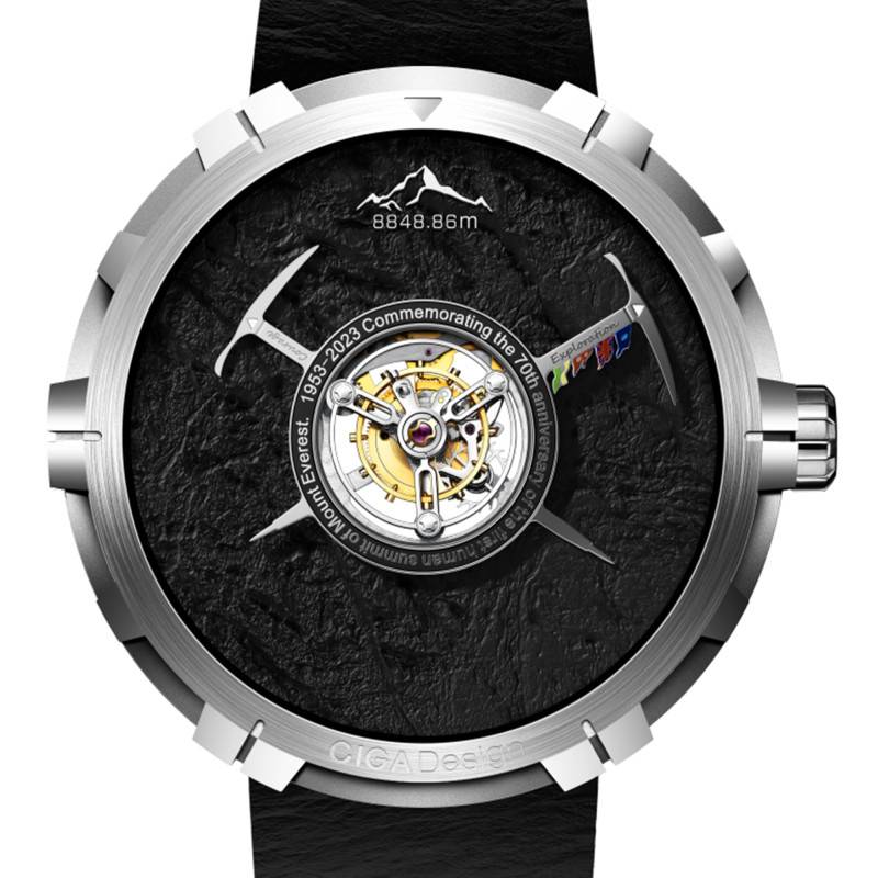 La montre Ciga Design incarne l'excellence horlogère contemporaine. Fabriquée en titane gris, elle combine à la perfection légèreté et robustesse. Le boîtier de forme ronde et de diamètre 48 mm est une fusion d'élégance moderne et de sophistication classique. Un hommage distinct est gravé pour commémorer les 70 ans du premier homme ayant conquis le mont Everest en 1953, ajoutant une dimension historique significative à ce garde-temps.