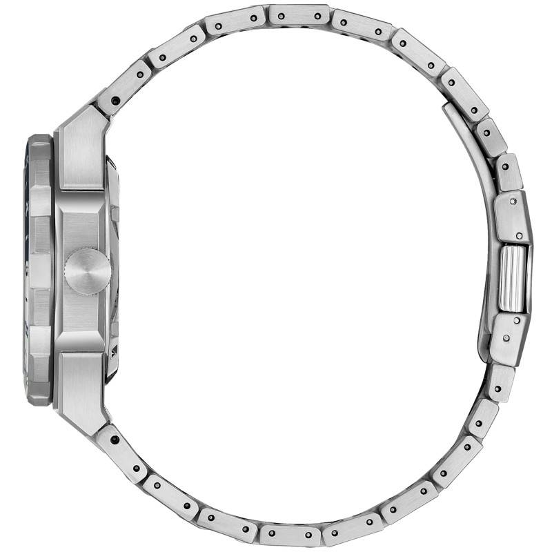Le bracelet en acier inoxydable, avec sa finition brossée, se fond parfaitement avec le boîtier de la montre, augmentant ainsi la cohérence esthétique de l'ensemble. Ajustement parfait et sécurité sont garantis grâce à la boucle déployante qui permet une mise en place rapide et une fixation fiable.