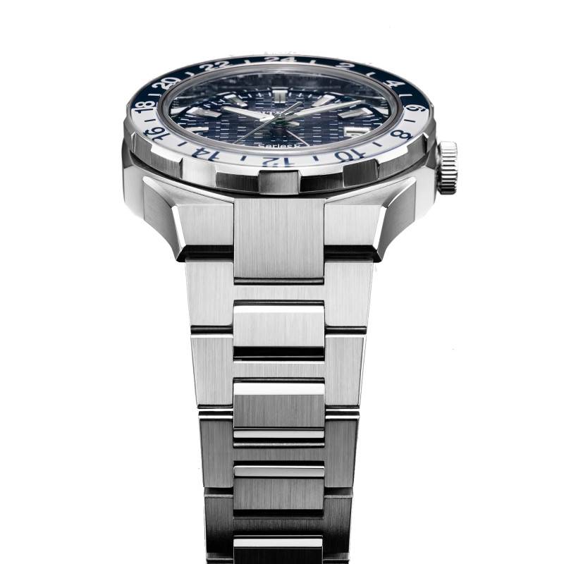 Le cadran de cette montre est une véritable œuvre d'art horloger avec son motif à damier bleu qui capte la lumière sous différents angles. Les index luminescents et le chemin de fer des minutes garantissent une lisibilité sans faille, même dans l'obscurité. Les aiguilles, également dotées de propriétés luminescentes, facilitent la lecture de l'heure lorsque la lumière ambiante est insuffisante. Outre son esthétique saisissante, le cadran offre une fonctionnalité accrue avec son guichet date discrètement positionné à 3 heures.