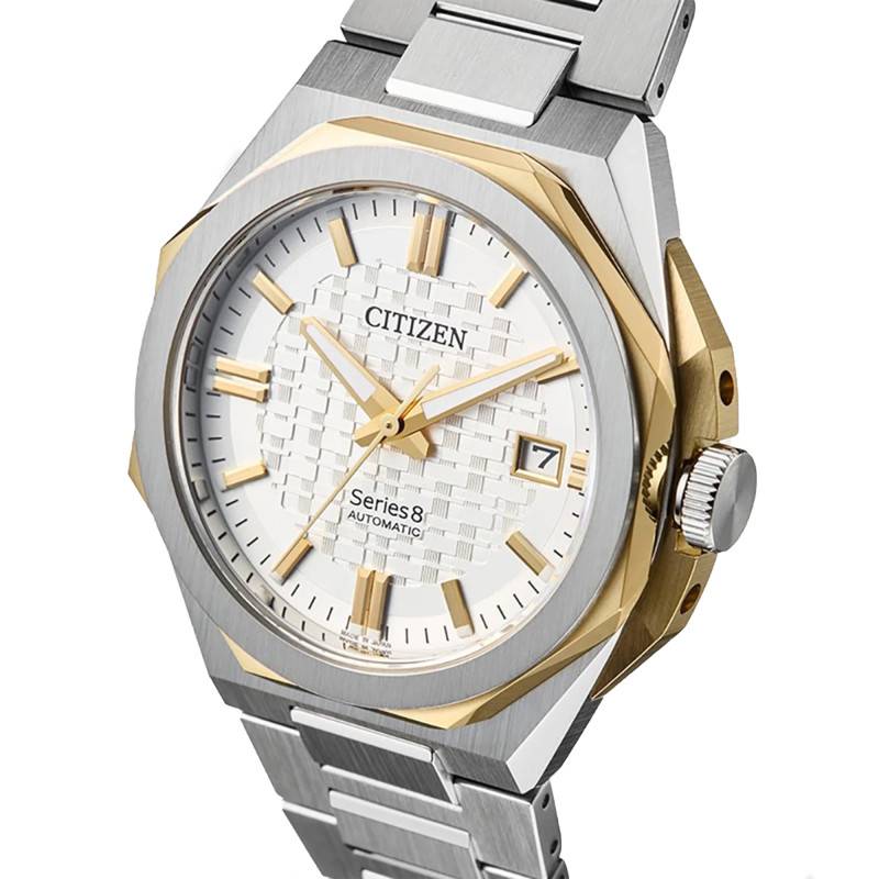 La Citizen Series 8 se distingue par son boîtier unique octogonal, une forme atypique qui attire immédiatement l'attention tout en conférant une élégance sophistiquée. Fabriqué en acier inoxydable, ce boîtier allie robustesse et légèreté avec un poids de 100 grammes, assurant à la fois confort et durabilité. Les finitions brossées ajoutent une touche moderne et masculine, renforçant le caractère dynamique de la montre. Protégée par un verre saphir, reconnu pour sa dureté exceptionnelle et son traitement antireflets, la montre offre une lisibilité optimale quelles que soient les conditions lumineuses. Dotée d'un fond vissé transparent, elle permet d'admirer la précision du mouvement automatique japonais abrité par cette pièce d'exception, particulièrement pour les amateurs d'horlogerie désireux d'explorer le mécanisme interne.