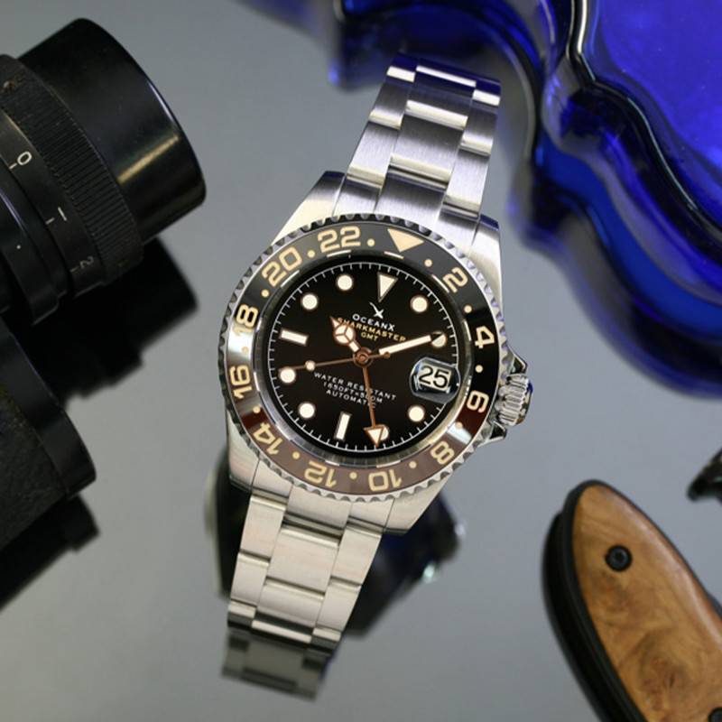 La OceanX Sharkmaster intègre un mouvement automatique de fabrication japonaise, le célèbre NH34 de Seiko Corporation. Ce calibre est reconnu pour son efficacité et sa robustesse, offrant une réserve de marche impressionnante de 41 heures. Fonctionnant à une fréquence de 21,600 A/h, il assure un fonctionnement fluide et précis. La présence d'un GMT permet à l'utilisateur de suivre deux fuseaux horaires simultanément, une fonction précieuse pour les voyageurs fréquents ou les personnes ayant des contacts professionnels à l'étranger.