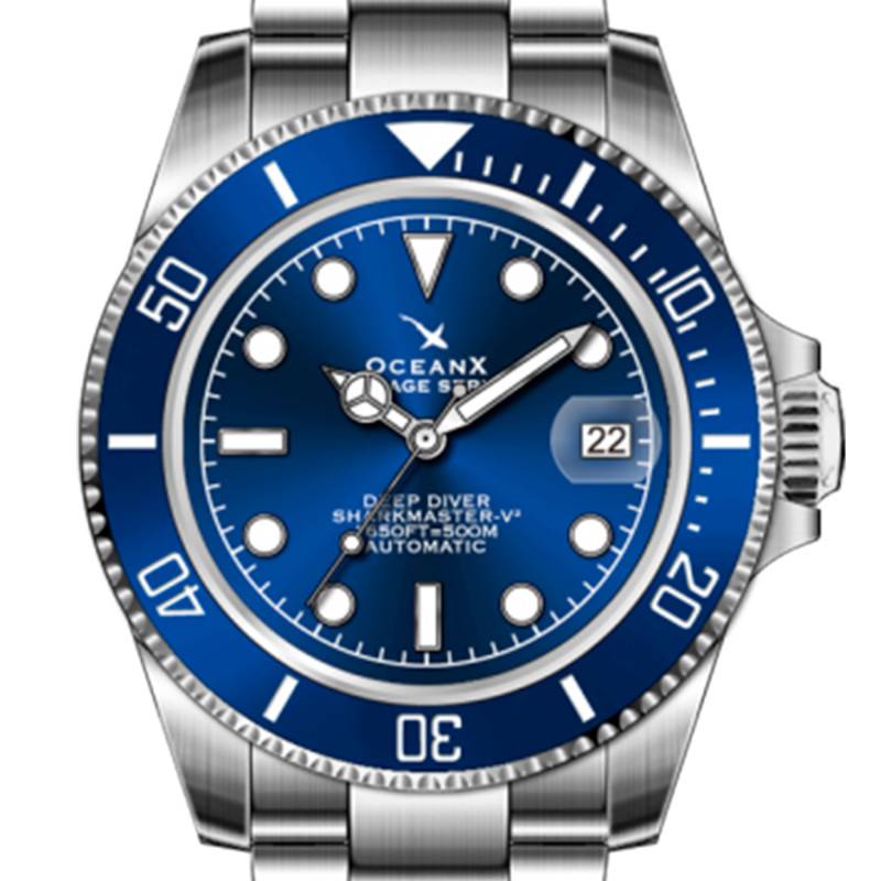 Le cadran soleillé bleu de la Sharkmaster-V2 est un spectacle à lui seul, capturant et reflétant la lumière de manière éclatante pour créer un effet visuel exceptionnel. La montre arbore des aiguilles et index luminescents, assurant une lisibilité optimale dans l'obscurité. Les chiffres arabes facilitent la lecture du temps, tandis que le guichet de date, discrètement situé, offre une information supplémentaire sans alourdir le design. Ce cadran est protégé par un verre saphir bombé, qui non seulement ajoute une touche d'élégance mais protège également contre les imprévus quotidiens avec son traitement antireflet.