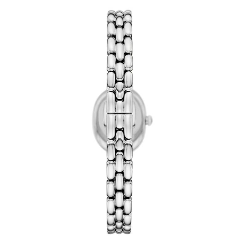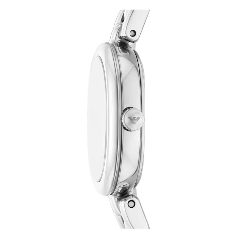 La montre Emporio Armani Sinfonia Femme se distingue par son boîtier de forme ovale en acier inoxydable, apportant une touche de modernité et d'élégance à votre poignet. Avec des dimensions équilibrées de 18 mm de largeur et seulement 6 mm d'épaisseur, elle se pose avec délicatesse sur la peau. Sa finition brillante accentue la beauté de l'acier, tandis que son fond emboîté assure un confort optimal et une protection accrue. Dotée d'un seul bouton remontoir, elle conserve un design épuré.