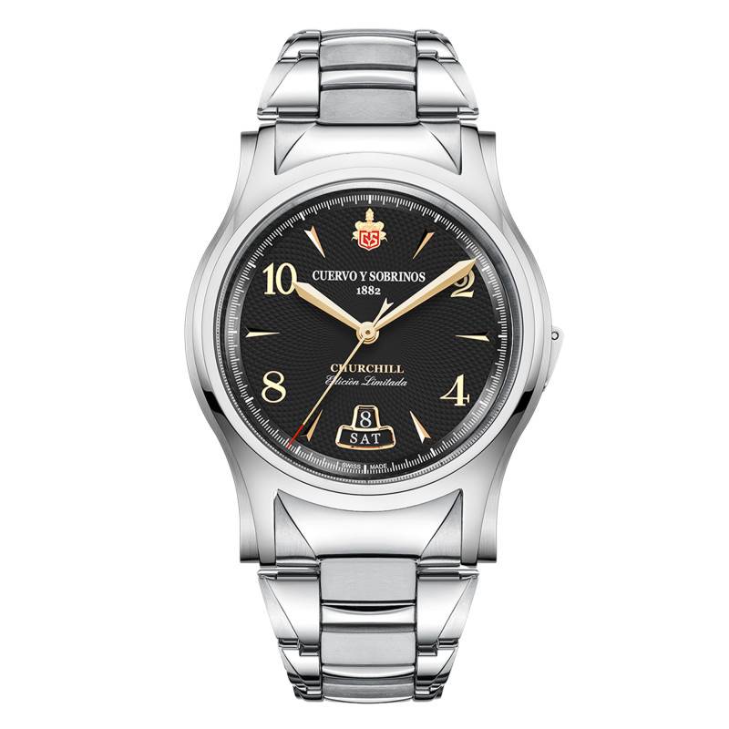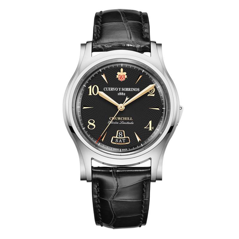 La montre Cuervo y Sobrinos Sir Winston 2810.1SWBL incarne l'élégance et l'artisanat suisse. En édition limitée à 282 pièces, chaque exemplaire est numéroté individuellement, renforçant son exclusivité. Le boîtier de 43 mm, fabriqué en acier inoxydable et titane, allie robustesse et raffinement. Doté d'une épaisseur de 12,45 mm, ce garde-temps offre une présence imposante tout en demeurant confortable au poignet. Le boîtier rond, complété par un fond transparent, permet d'admirer les détails du mouvement automatique Sellita, un choix prestigieux pour toute collection. Sa conception mise sur un équilibre parfait entre finitions polies et brossées, témoignant du soin apporté à chaque détail.