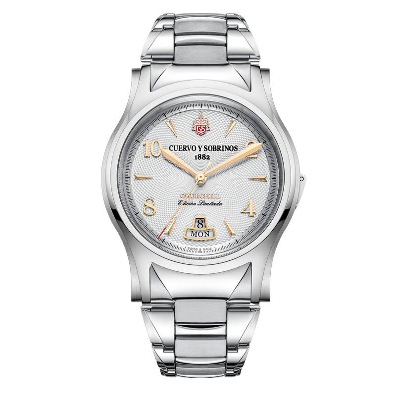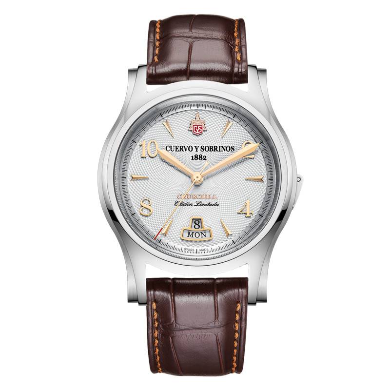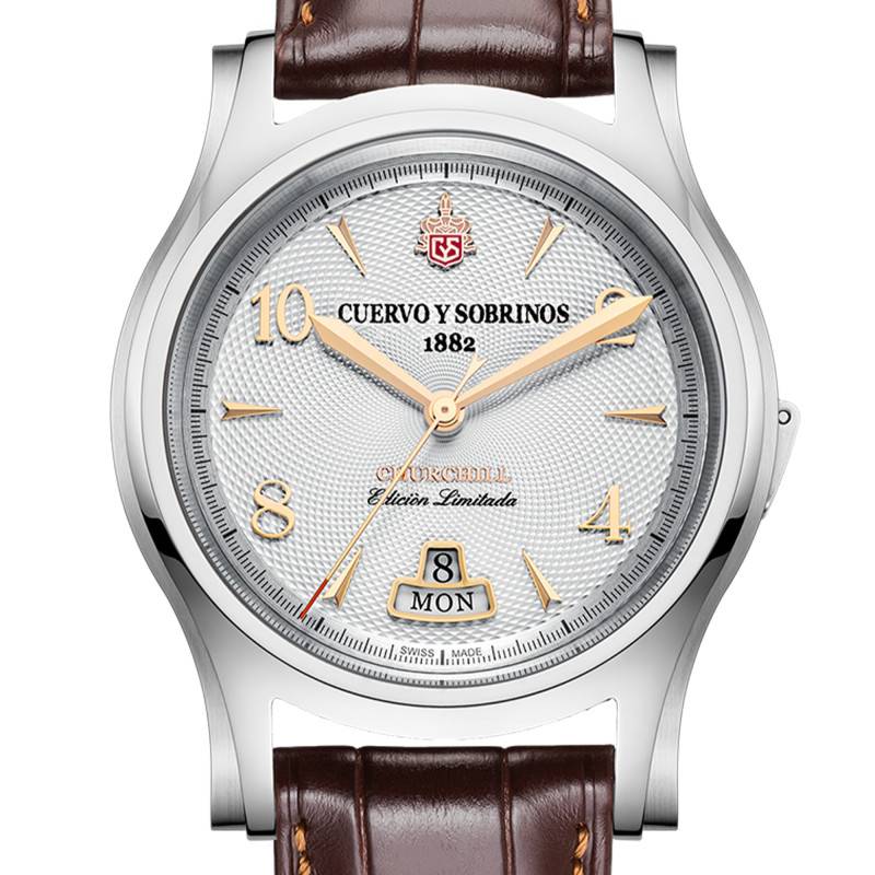 La montre Cuervo y Sobrinos Sir Winston 2810.1SWS se présente comme une véritable fusion d'élégance et de savoir-faire horloger suisse. Ce garde-temps arbore un boîtier rond aux dimensions imposantes de 43,00 mm de diamètre et de 12,45 mm d'épaisseur, conjuguant avec finesse la robustesse de l'acier inoxydable et la légèreté du titane. Chaque élément de ce modèle, produit en édition limitée à 282 pièces numérotées, renforce sa rareté et son caractère unique. L'alliance de ces matériaux assure une solidité remarquable tout en préservant une élégance discrète. Le fond transparent rend hommage au mouvement interne et invite à admirer son fonctionnement intime.