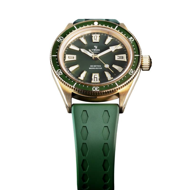 Découvrez la montre Skin Diver Slim de la prestigieuse marque Yema. Ce garde-temps est spécialement conçu pour l'homme moderne qui recherche à la fois l'élégance et la fonctionnalité. Dotée d'une fabrication française, cette montre affiche un style audacieux avec une combinaison de couleurs jaune et verte qui ne manque pas d'attirer les regards. Le boîtier rond est réalisé en bronze, ajoutant une touche de luxe discrète tout en garantissant une robustesse incomparable. Avec ses formes subtilement travaillées, la montre arbore une finition mate (brossée/satinée) et polie/brillante, offrant une esthétique à la fois sobre et sophistiquée. La conception du boîtier présente une longueur de 47,00 mm, un diamètre de 39,00 mm et une épaisseur de 10,00 mm, conférant à cette montre une présence imposante mais équilibrée au poignet. Le fond de la boîte est transparent et vissé, permettant de contempler le mouvement à travers la haute qualité du verre saphir.
