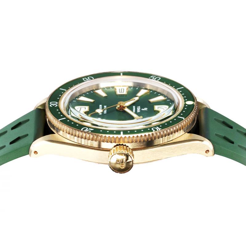 Le bracelet de cette montre est conçu pour maximiser votre confort et votre style. Fabriqué en FKM, il est extrêmement résistant tout en offrant une flexibilité inégalée. Sa teinte verte luxuriante complète parfaitement le boîtier en bronze, ajoutant une touche de dynamisme et de modernité. La largeur d'entrecorne de 20,00 mm garantit une adaptabilité parfaite pour sécuriser la montre à votre poignet. Le fermoir de type boucle ardillon assure une sécurité accrue tout en permettant un ajustement facile et rapide. Ce bracelet fait de cette montre un compagnon idéal pour les amateurs de plongée, de yachting ou simplement pour les amants du grand large.