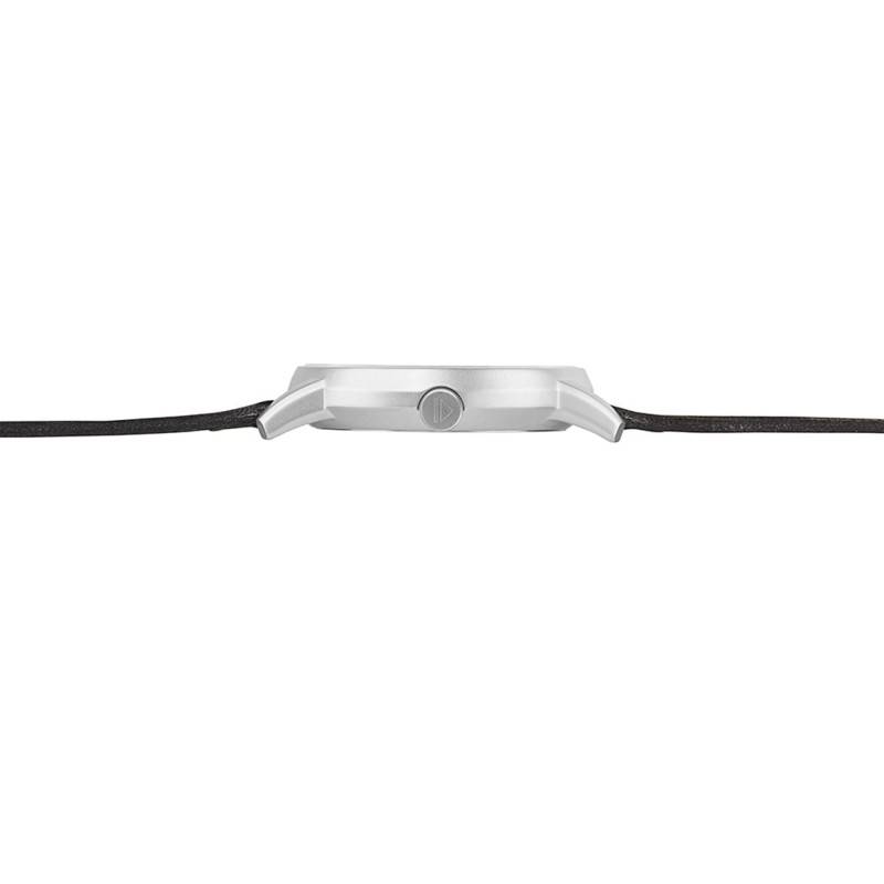 Afin d'accompagner votre poignet, cette montre se fixe à l'aide d'un bracelet en cuir de veau souple italien, d'une couleur noire. Disposant d'une fermeture à boucle ardillon argentée, vous noterez l'entrecorne de 16 mm.