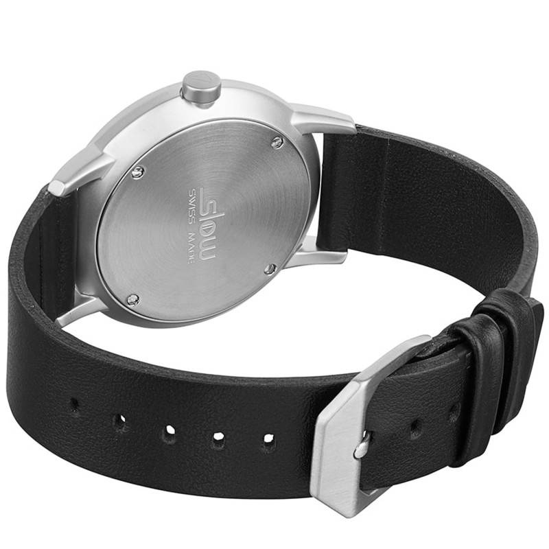 La marque Slow Watches existe depuis plus de 10 ans, ayant pour objectif de rappeler aux utilisateurs d'apprécier le temps qui leur est alloué. La maison vous présente aujourd'hui son modèle Round S 01, doté d'un boîtier de 34 mm de diamètre et 8.25 mm d'épaisseur, ce dernier est conçu en acier inoxydable. Protégé des chocs du quotidien par une vitre en verre saphir, cette montre vous accompagnera dans tous vos déplacements. Sa couleur argentée s'accordera avec toutes vos tenues. À trois heures vous trouverez une couronne remontoir permettant le réglage de la montre. Grâce à son fond de boîte maintenu par des vis, ce modèle vous permet une étanchéité de 100 mètres de profondeur, soit 10 atmosphères.