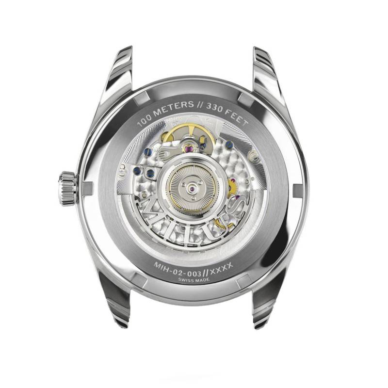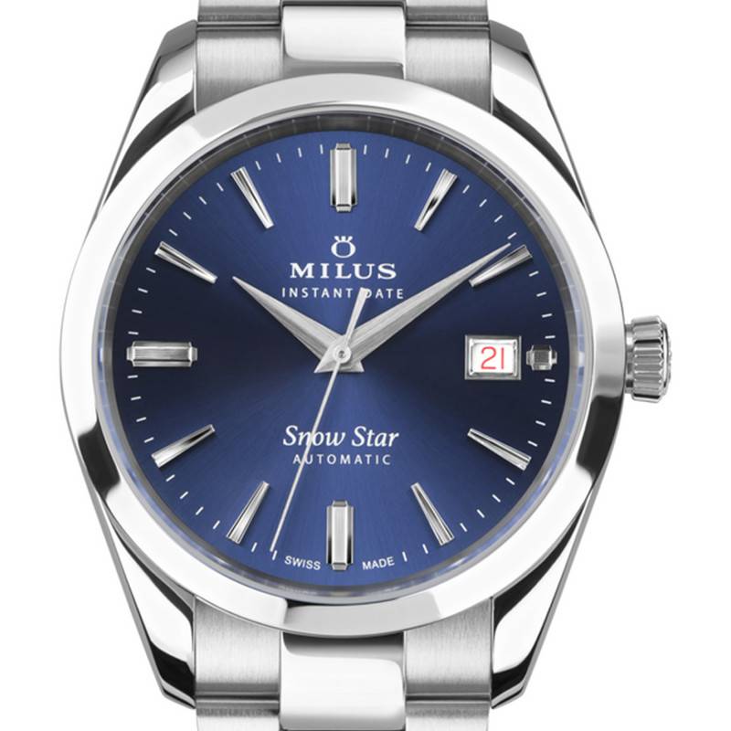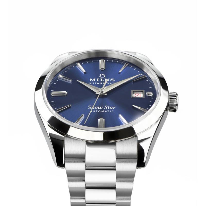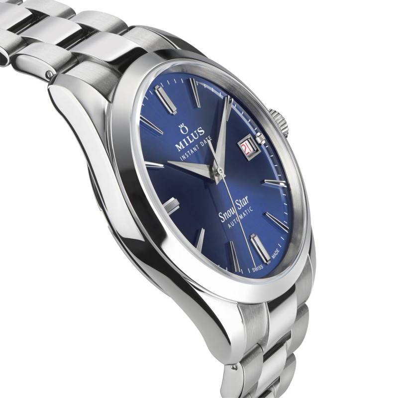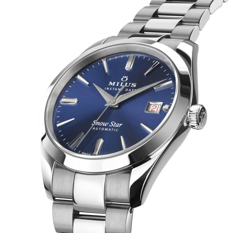 La montre Milus Snow Star Supreme incarne l'élégance et la sophistication grâce à son design méticuleusement travaillé en acier inoxydable 904L. Le boîtier rond, avec un diamètre de 39 mm et une épaisseur de 9,45 mm, se distingue par ses lignes sobres et raffinées, idéal pour l'homme moderne à la recherche de précision et de finesse horlogère. À cela s'ajoute un verre saphir bombé avec un traitement antireflets qui assure une clarté exceptionnelle tout en protégeant efficacement le cadran. Le fond de la boîte, transparent et vissé, dévoile le mouvement automatique et témoigne du savoir-faire artisanal suisse.