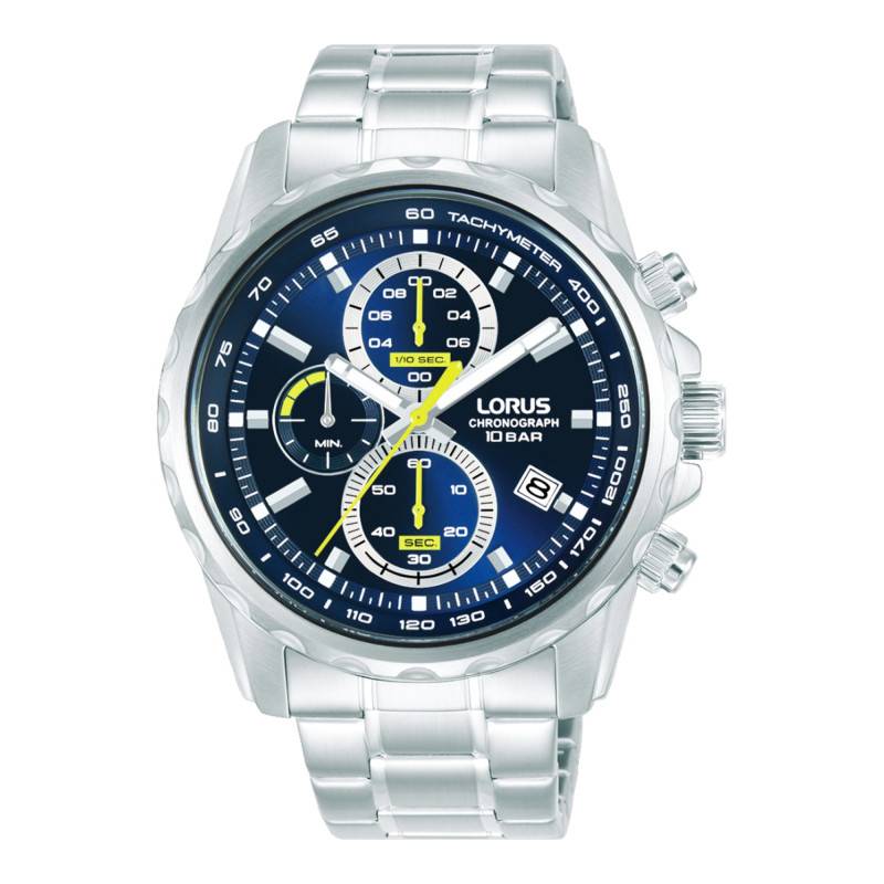 La montre Lorus Chronograph se distingue par son boîtier en acier inoxydable aux lignes épurées et modernes, d'un diamètre de 43 mm et une épaisseur de 11,4 mm. Sa construction robuste lui confère une résistance exceptionnelle tout en garantissant un confort optimal pour une utilisation quotidienne. La lunette tachymétrique ajoute une fonctionnalité permettant la possibilité de mesurer la vitesse, un atout majeur pour les amateurs de chronométrage précis. Le fond vissé contribue à l'étanchéité jusqu'à 10 ATM, assurant protection et durabilité, même dans des conditions d'eau difficiles. Fabriquée au Japon, elle associe tradition et technologie moderne.