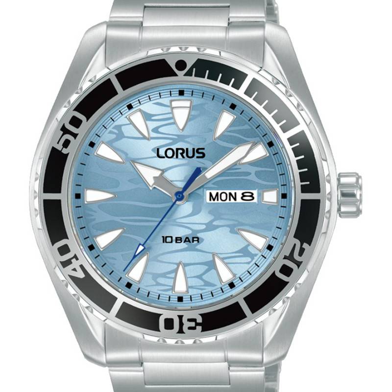 Le cadran de cette montre se distingue immédiatement par son bleu captivant, sublimé par un motif de vagues qui évoque les profondeurs marines. Les aiguilles ainsi que les index sont luminescents, offrant une lisibilité optimale dans toutes les conditions de luminosité. Le cadran abrite un guichet date et jour situé à 3 heures, offrant non seulement une fonction pratique mais également un équilibre visuel harmonieux. Cette montre adopte un style classique mais efficace, avec un affichage analogique qui conserve le charme intemporel de l'horlogerie traditionnelle.