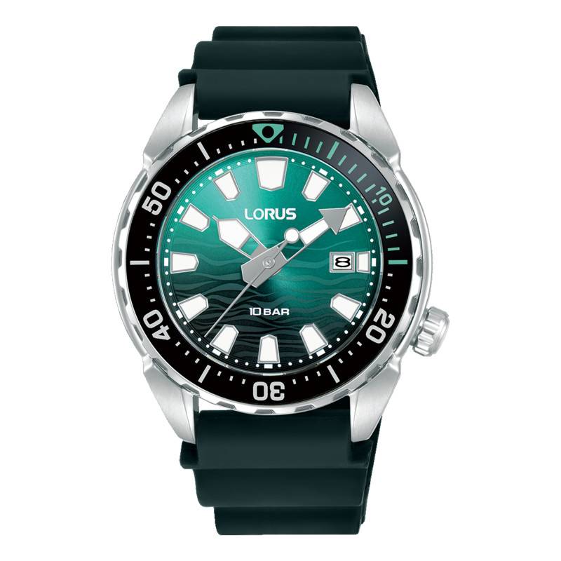 Avec un travail esthétique soigné, le cadran de la Lorus Sport Sea Quartz arbore un splendide motif de vagues, rehaussé de nuances vertes qui évoquent les profondeurs de l'océan. Ce design ajoute une dimension dynamique à l'ensemble tout en magnifiant l'esprit sportif et élégant de cette montre. Les index appliqués et les aiguilles sont revêtus d'une matière luminescente, garantissant une lisibilité optimale même dans des conditions de faible luminosité. Un chemin de fer minutieusement tracé en périphérie du cadran permet une lecture précise de l'heure. À 3 heures, un guichet affiche la date, une fonction pratique pour rester constamment à jour. Les aiguilles indiquant les heures, minutes et secondes sont finement travaillées pour donner au cadran son allure unique et sophistiquée, tout en se démarquant dans la diversité de leurs formes et de leurs dimensions.