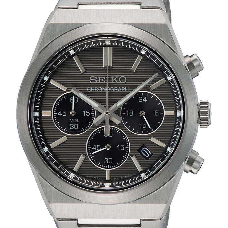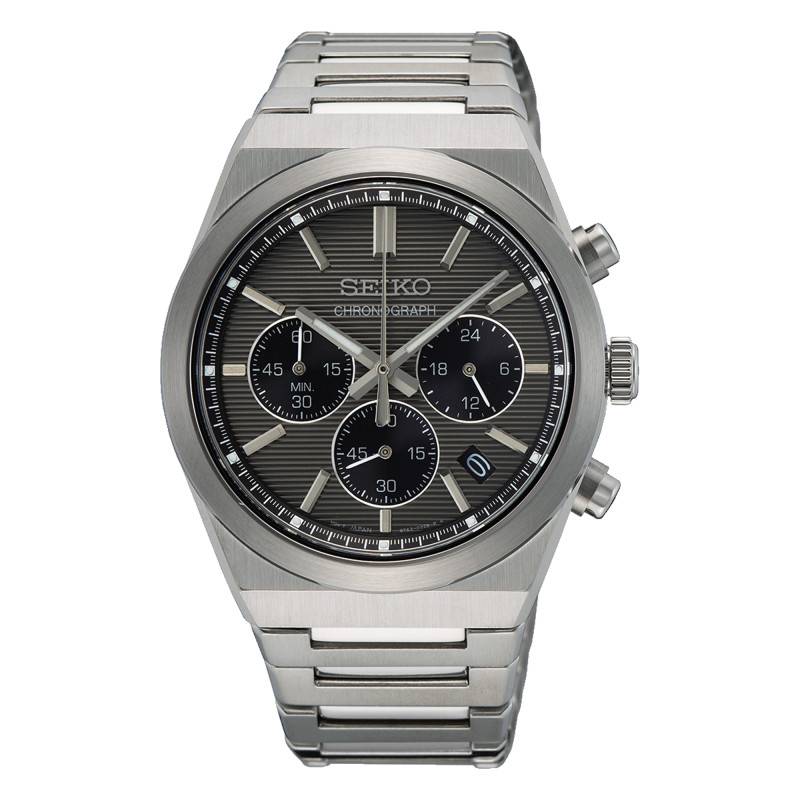 Fondée en 1881, Seiko est l'une des marques horlogères les plus reconnues dans le monde. Elle propose des garde-temps innovants munis de technologies de pointe et arborant des designs créatifs. Très fiable, chaque modèle représente l'essence de l'artisanat japonais, comme la montre Sports SSB455P1 qui incarne les valeurs de la marque. Celle-ci est livrée avec un boîtier tonneau en acier inoxydable qui offre résistance et durabilité. Très réussi, il affiche une couleur argentée en parfaite harmonie avec une finition brossée sur toute la surface et des côtés polis pour plus de prestance. Ce boîtier s'adapte à tous les poignets masculins du fait de son diamètre de 40 mm et son épaisseur de 11,50 mm. Il comporte également un verre saphir plat qui protège à la perfection le cadran contre les rayures et offre une belle vue de ses éléments. La couronne de réglage se place à 3 heures et affiche un joli crantage qui permet une bonne saisie lors de sa manipulation. Elle est accompagnée par deux boutons-poussoir aussi élégants que cette dernière, qui vous seront utiles pour la configuration de la complication chronographe. Le tout est associé à un fond de boîte vissé qui promet une étanchéité de 10 ATM.